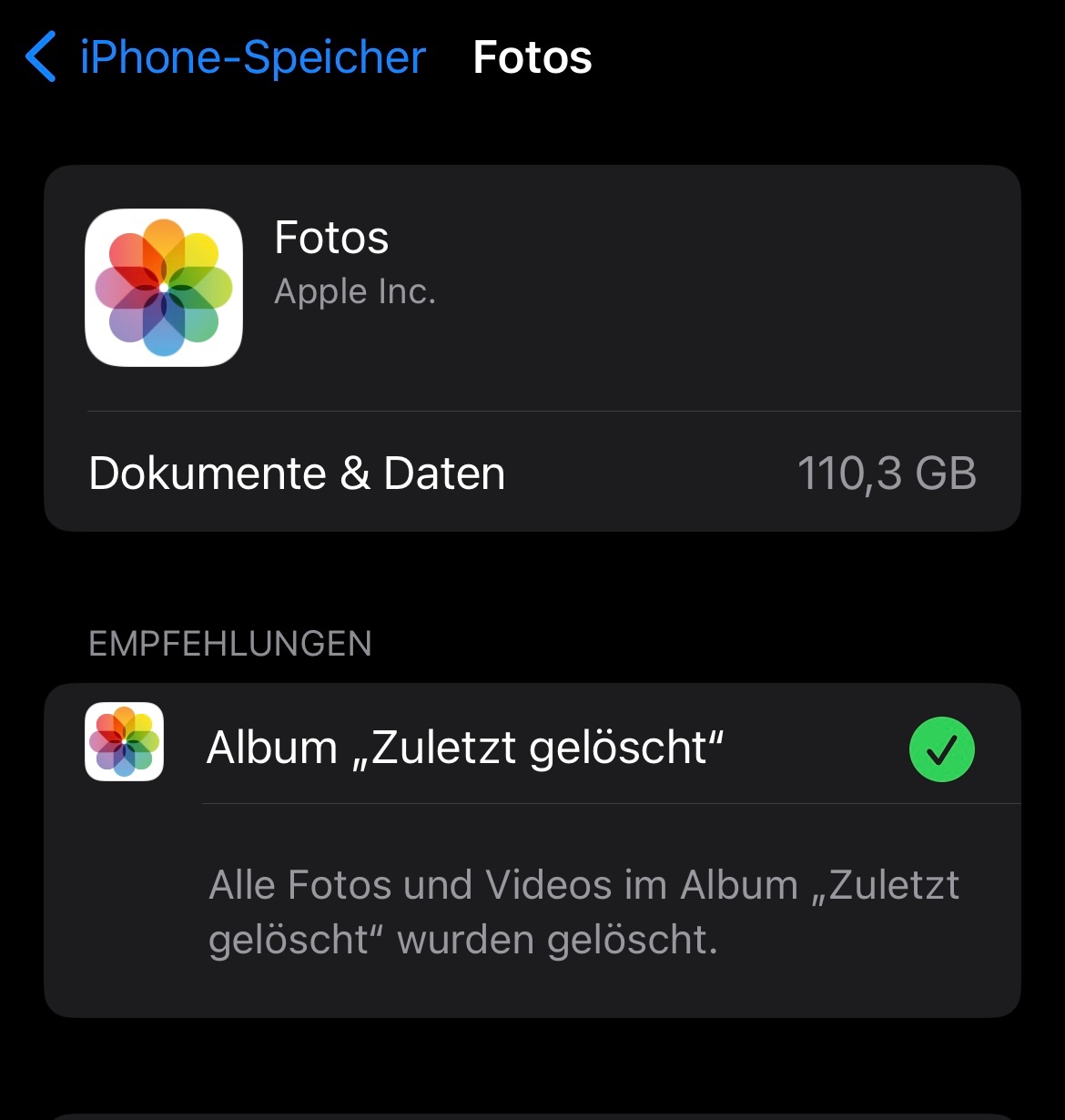 Foto App belegt zu viel Speicher mit Dokumenten und Daten
