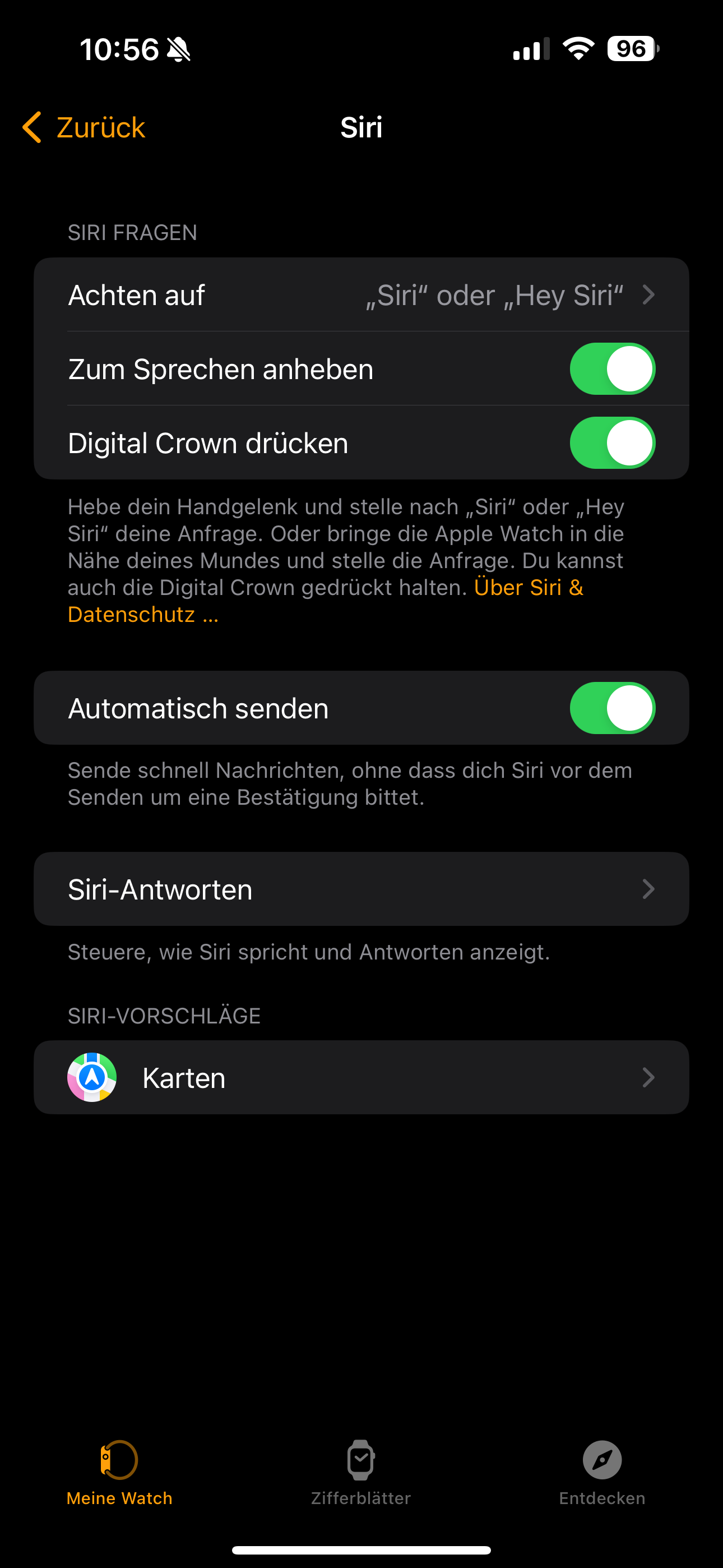 Siri auf meiner Apple Watch 8 reagiert nicht mehr bzw. antwortet nicht mehr bei Aktivierung durch Drücken auf die Digital Crown.