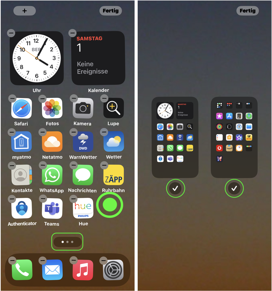 Seit dem Update auf 17.5.1 verschwinden die letzte Homescreenseite mit den darauf enthaltenen Apps. Neustart hat nicht geholfen. Das Umstellen in „Home-Bildschirm & App-Mediathek“ auf „Nur Mediathek“ und zurück auf „Zum Homeschreen“ halfen auch nicht weiter. Sporadisch erscheint die letzte Homescreen Seite mit den Apps wieder. Ein kommen und gehen. In der App-Mediathek sind die Apps auch auffindbar. Unter Hat jemand eine Idee?