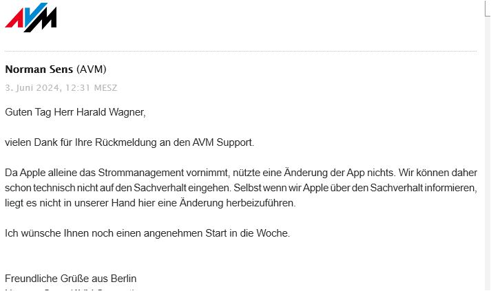 Jetzt schon mehrfach... Die App Fritz! Fon macht mein iPhone 14 Pro unbrauchbar, weil über Nacht der Akku leergesaugt wird und am nächsten Morgen noch nicht mal mehr der Wecker funktioniert (Akku 1%). Der App-Entwickler AVM ist der Meinung, dass seine App fehlerfrei ist und verweist auf das Apple-Powermanagement. Komisch, dass alle anderen App nachts keine Aktivitäten zeigen außer der Fritz! Fon App. Kennt jemand das Problem oder hat die Lösung? Die Apps und OS aller Devices waren/sind immer auf neuestem Stand.
