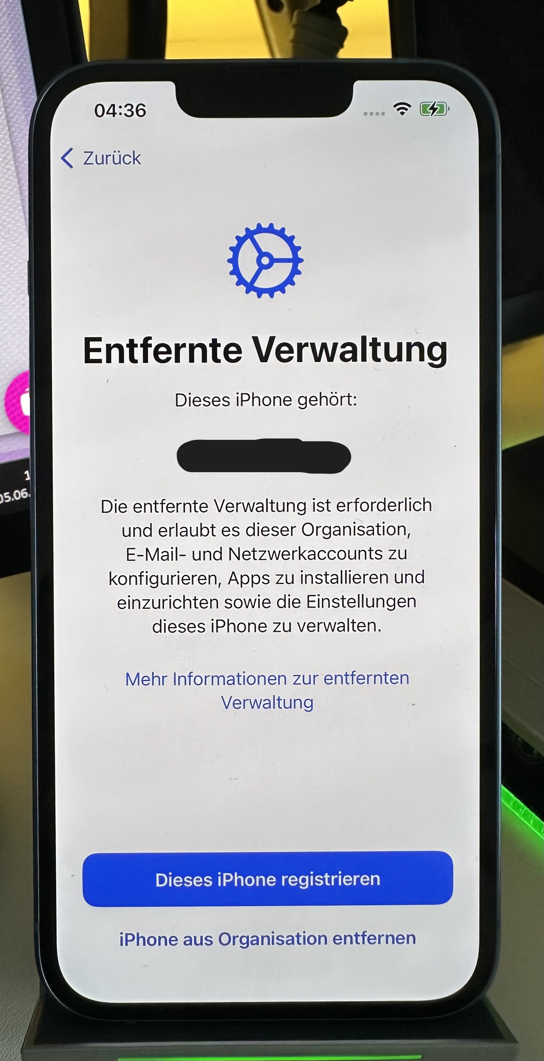Entfernte Verwaltung "iPhone aus Organisation entfernen"