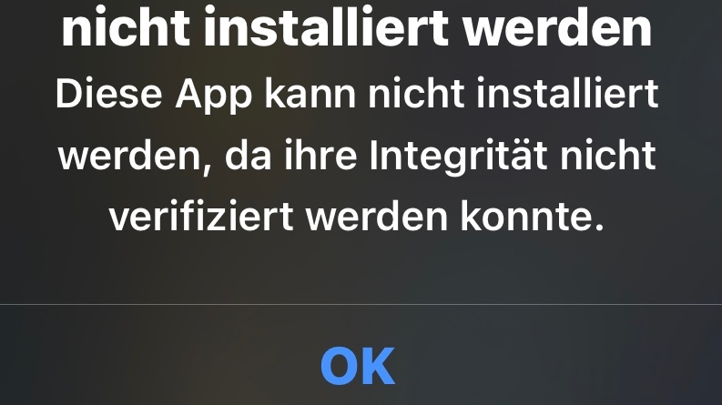 Meldung "App kann nicht installiert werden, da Integrität nicht verifiziert werden konnte" erhalten