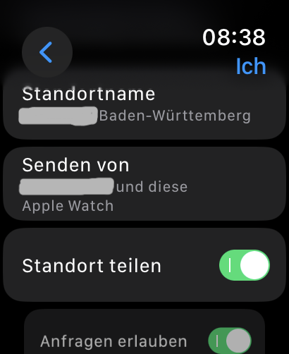 Wenn du dich außerhalb der Reichweite deines iPhones befindest und deine Watch trägst, dann sollte der Standort deiner Watch geteilt werden, vorausgesetzt, dass es sich um ein Cellular-Modell handelt und eine aktivierte eSIM besitzt.