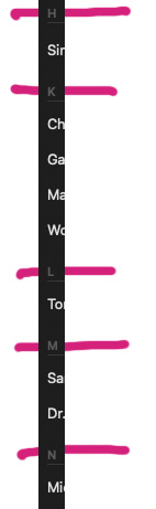 Manche Kontakte Listen werden 'Buchstaben Kapitel' unterteilt werden