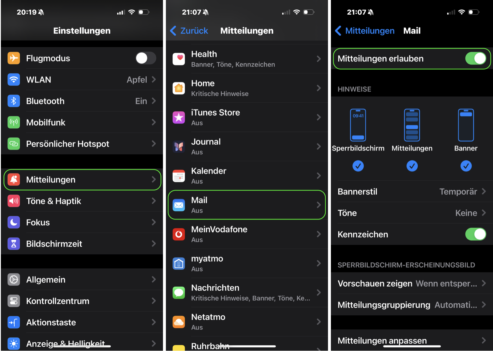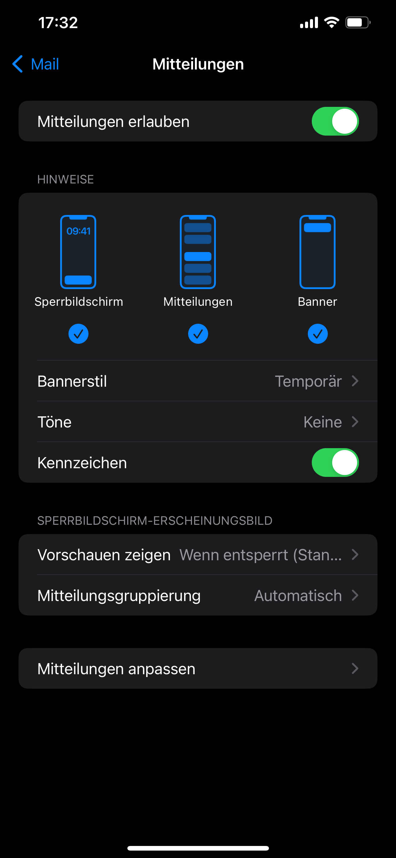 Ich bekomme ausschließlich von der original App von Web.de die Mitteilung. Von der Original Mail app kommt gar nichts.