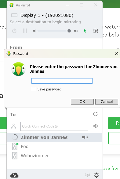 Ich habe soeben versucht, meinen Homepod Mini als Lautsprecher am Pc mit folgendem Programm zu benutzen (https://www.airsquirrels.com/airparrot/remote). Wenn ich mich jetzt mit meinem Homepod Mini verbinden will, werde ich nach einem Passwort gefragt. Ich kann mich aber nicht errinern, jemals eins festgelegt zu haben. Gibt es eine Möglichkeit dieses herauszufinden / zurückzusetzen?