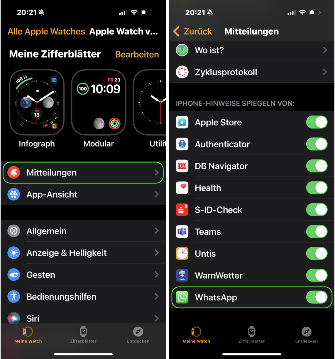 Ich möchte WhatsApp-Benachrichtigungen auf der Uhr angezeigt bekommen.