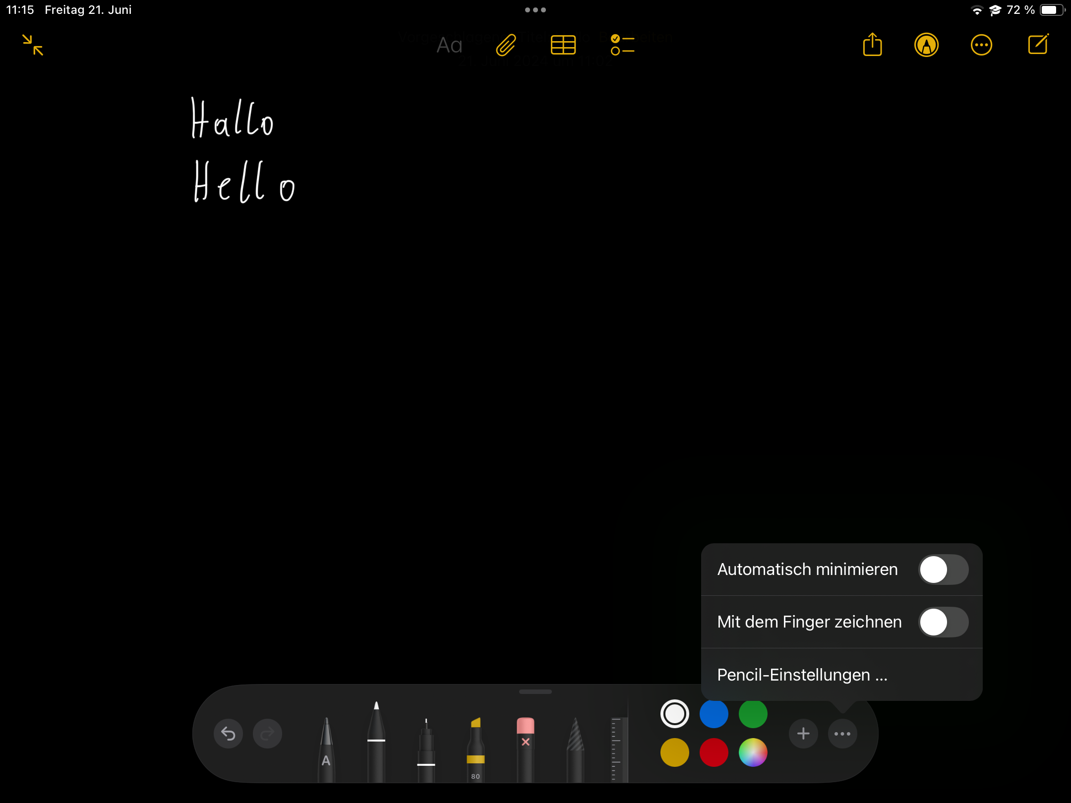 Wenn ich in Notizen oder Freeform mit meinem Pencil schreibe, wird (so wie im WWCD 24 vorgestellt) meine Handschrift "verfeinert" bzw verbessert. Ich verwende ein iPad 9. Generation und einen Apple Pencil 1. Generation. Ich hab vor ein paar Tagen einen anderen Community Support Artikel gesehen in dem es auch um die Smart Script ging und da gab es bei einem diese Funktion die er irgendwie and und aus schalten konnte. Ich hab unten ein Bild angehängt wo ich genau an dem "Ort" nachgeschaut habe (glaube ich) und bei mir war es leider nicht. :(