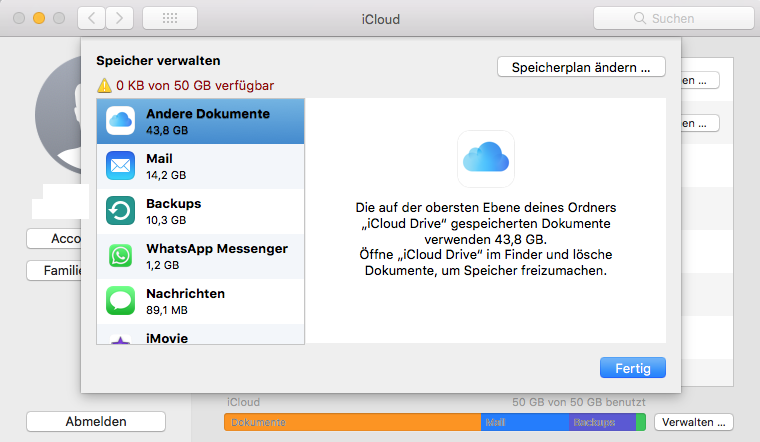 Sorry, ich bin's nochmal. Wenn ich Dokumente in der iCloud löschen will, geht das NUR über iCloudDrive (s.Foto). Wenn ich das tue, dann wird das Dokument endgültig gelöscht. Dabei war es doch immer auf meiner Festplatte gespeichert und nicht in der Cloud. Ich könnte ja auch meinen Cloud+ Abo kündigen, dann bleiben die Daten doch auch (hoffentlich!) auf meiner Festplatte ...