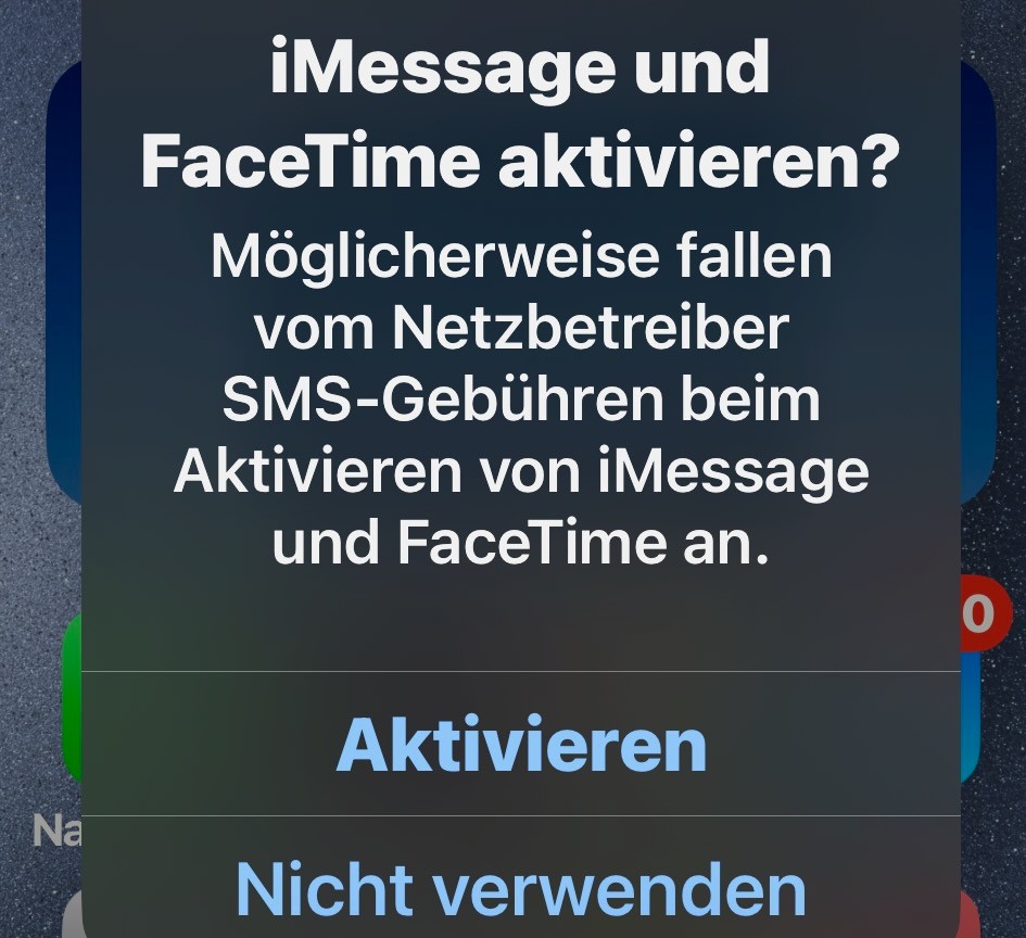 Nach Neustart wird die Meldung "iMessage und FaceTime aktivieren?" gezeigt
