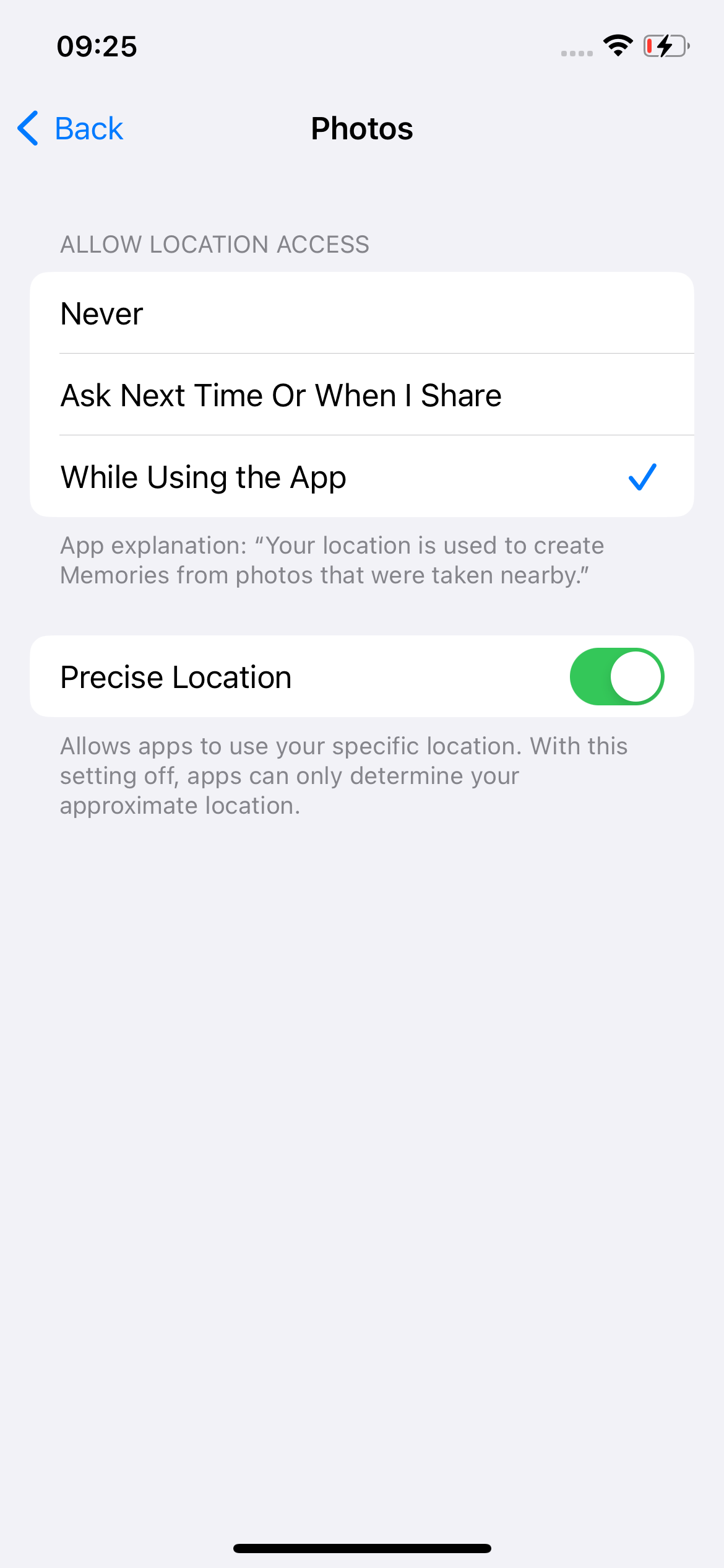 der Standort meiner Fotos wird nicht aufgenommen, obwohl die StandortDienste an sind.