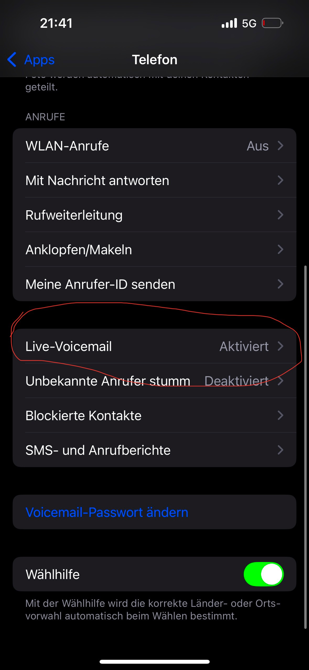 Ich habe die funktion live voicemail nicht in den einstellungen was kann ich tun das ich das habe?