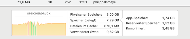 Dein Mac hat auch bereits Daten aus dem Arbeitsspeicher auf die langsamere Festplatte abgelegt (Swap), dass macht ihn damit noch langsamer.