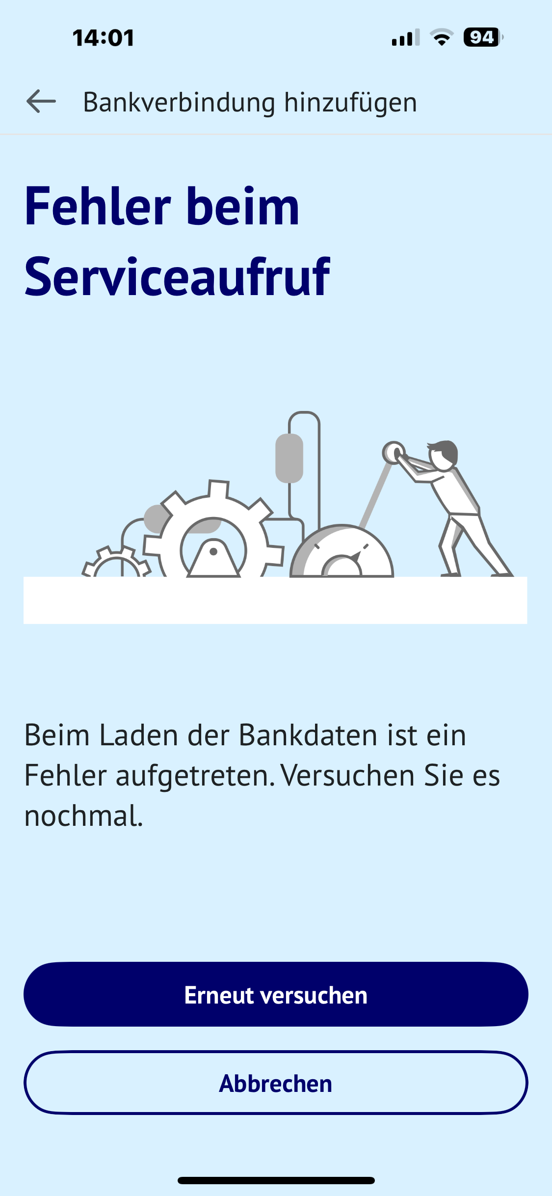 Die Bankfenster gehen auf, aber bei Einloggen stoppt der blaue Strefen nach ca. 1 cm und das Fenster bleibt schwarz, beim iPhone das Fenster: