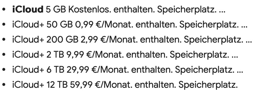 die Kosten für zusätzlichen iCloud-Speicher beginnen bei: