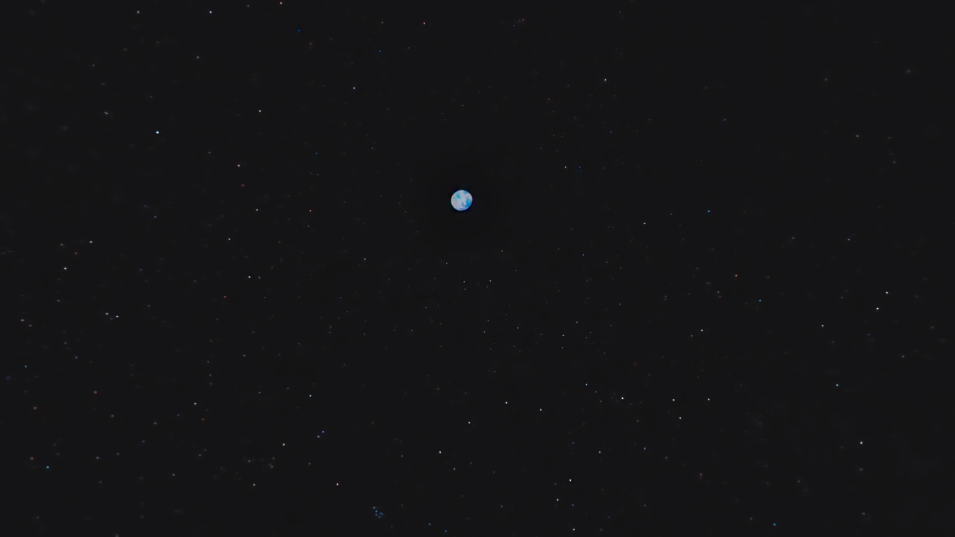 Wenn ich die Erde nicht direkt ansehe, erscheint sie im Bildschirmfoto nur als verwaschener, blauer Fleck. Das entspricht der reduzierten Auflösung, die die Vision Pro am Rande des Bildfeldes hat.