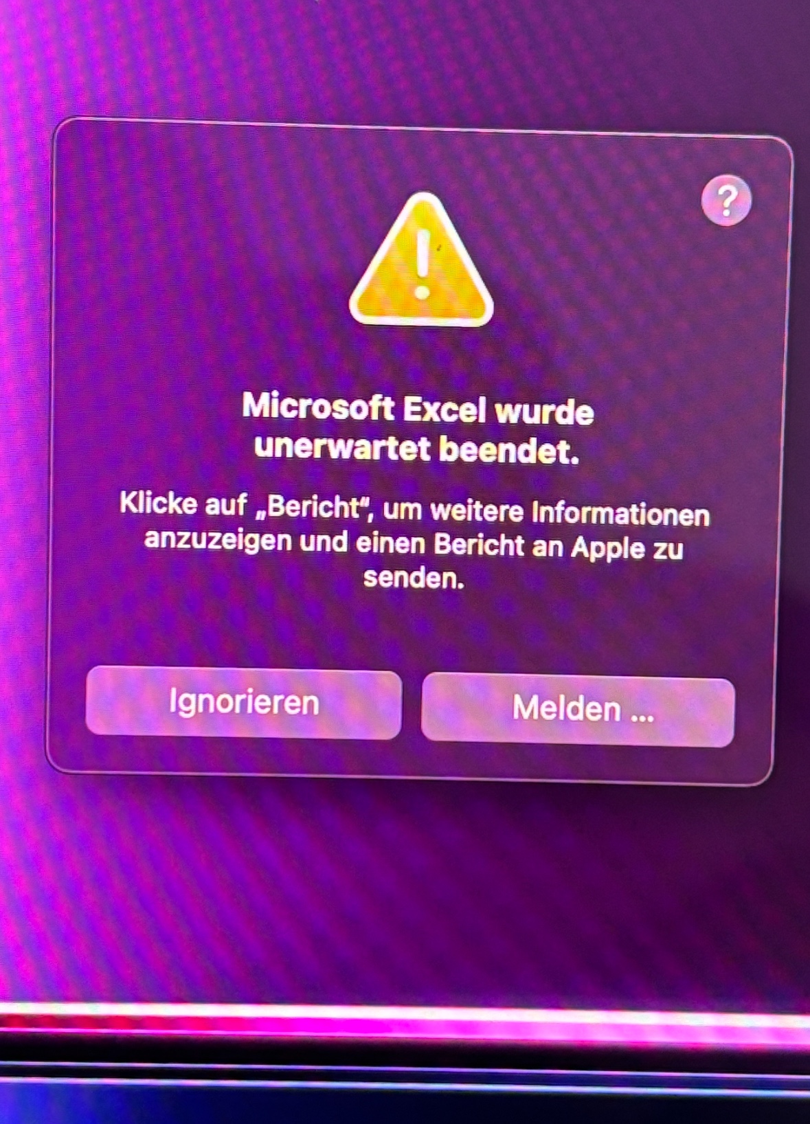 Nun wollte ich Word / Excel öffnen aber es kommt der Fehler: Microsoft Excel wurde unerwartet beendet.