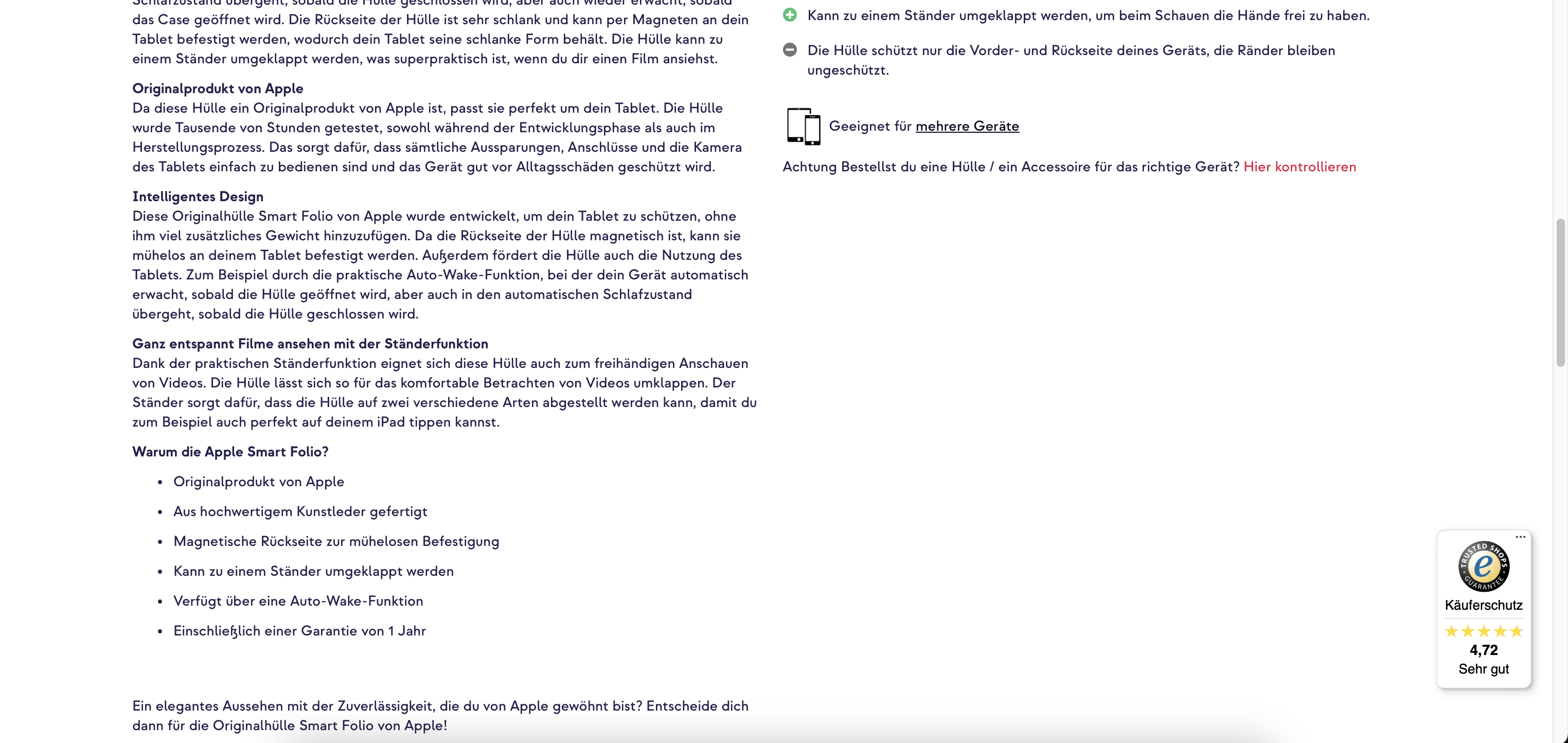 ich habe ein Smart Folio fürs iPad Pro bei einem nicht autorisiertem Apple Händler gekauft. Leider bekomme ich keines mehr bei Apple (iPad Pro 11 3. Gen. M1).