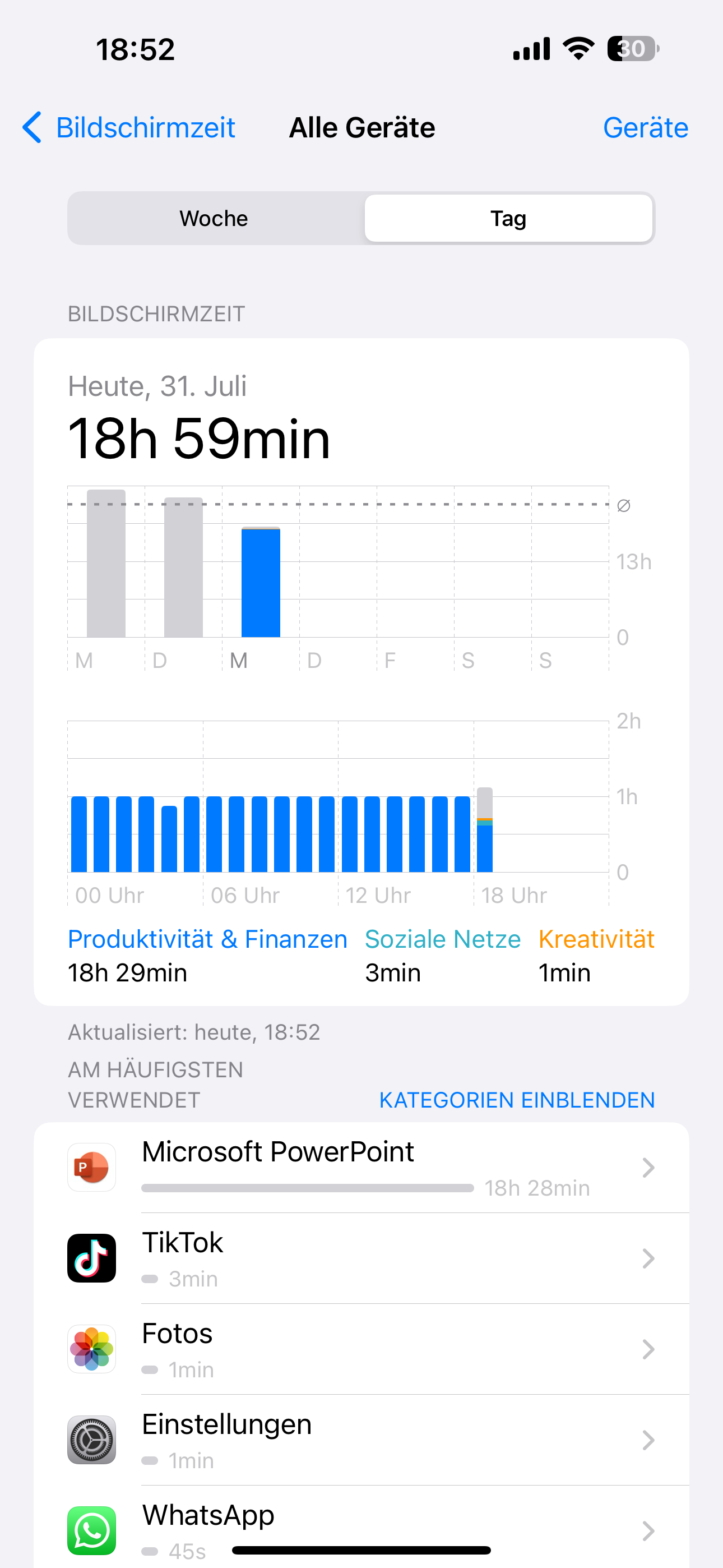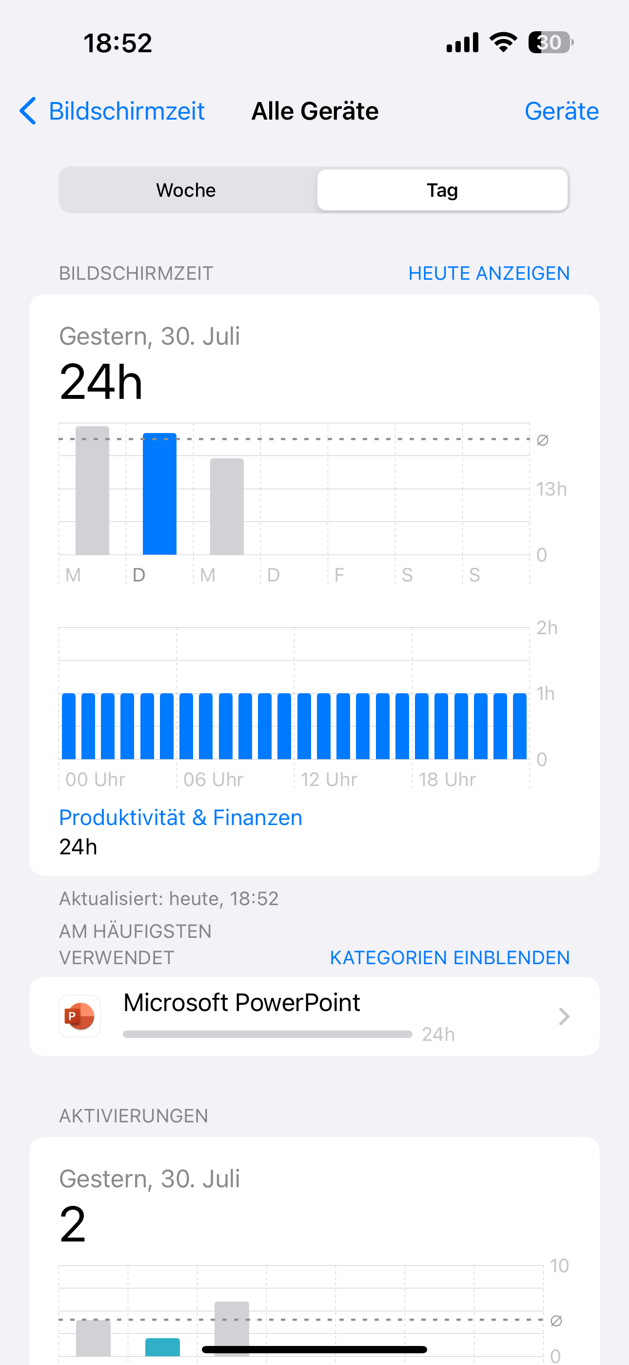 Hallo bei meiner Bildschirmzeit wird angezeigt das PowerPoint wohl 24h laufen würde. Ich habe schon fast alles versucht, Handy neu gestartet und einige Einstellungen, aber nicht mein Handy, zurückgesetzt.