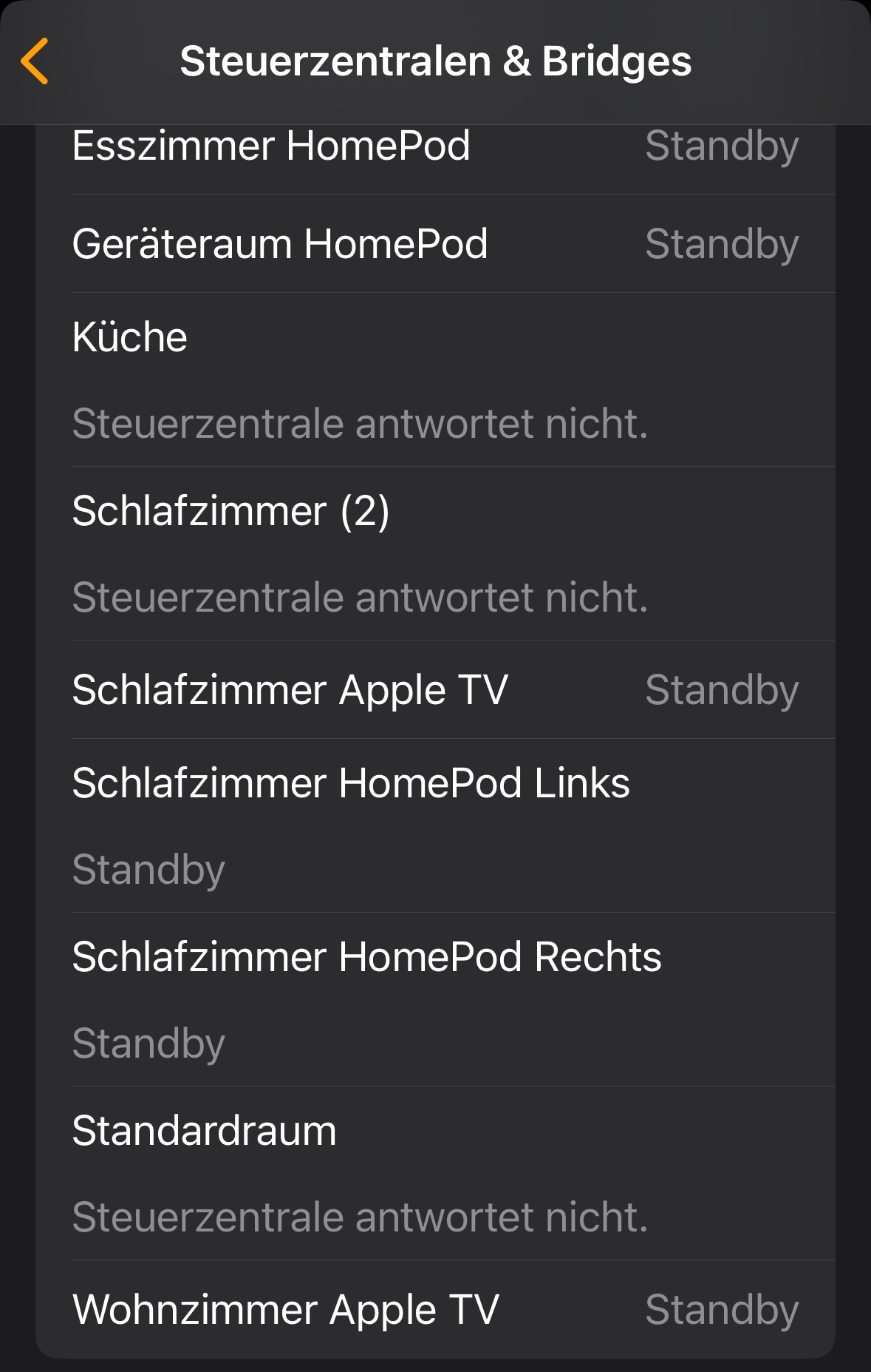 ich habe das Problem das mit in HomeKit angezeigt wir das 3 Steuerzentralen nicht antworten Diese steuerzentralen gibt es aber gar nicht mehr und werden auch nicht unter meinen iCloud Geräten gelistet. Wie bekomme ich die Meldung in HomeKit weg ?
