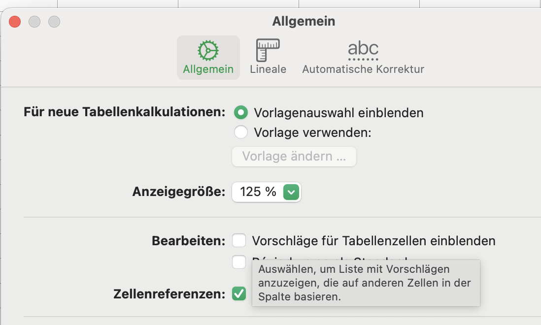 Einzelne Textbausteine in Numbers in der automatischen Vervollständigung löschen