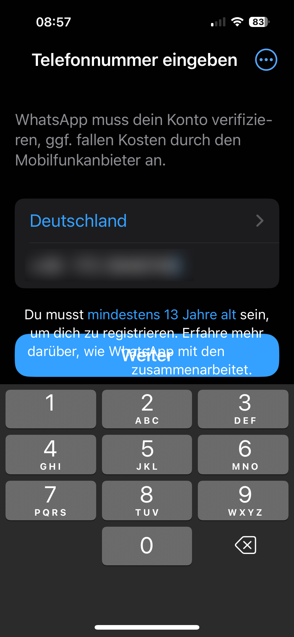 Leider versuche ich seit Monaten vergeblich Whatsapp zu installieren und der Support hilft mir da nicht weiter. Nachdem ich meine Telefonnummern eingegeben habe, kann ich die "Weiter"-Taste nicht anklicken, da diese von einem Text überlagert wird. Bin ich der Einzige der dieses Problem hat??