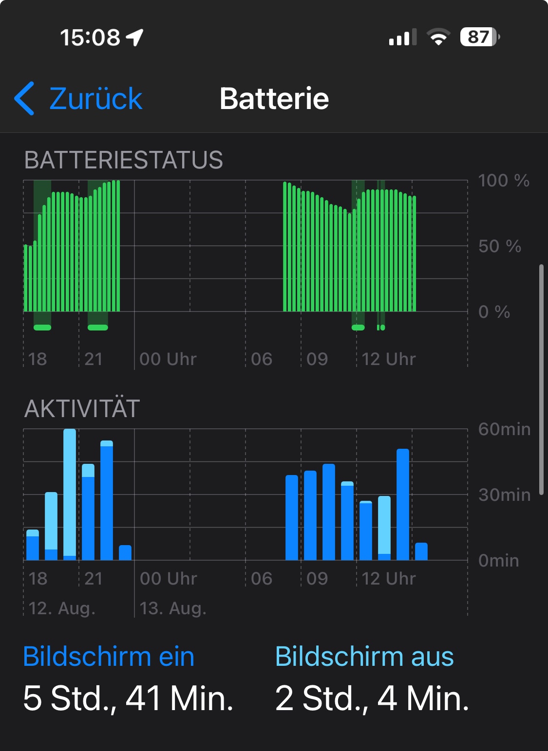 seit dem Update auf 17.6.1 rast mein Akku runter!?! Um 9 Uhr mein iPhone 15 Pro Max angeschaltet (97%), drei kurze Telefonate (zusammen ca. 6 Minuten) geführt und eine kurze Recherche im Internet gemacht und jetzt schon auf 78%!???! Gestern Abend knapp 20 Kilometer mit dem Ebike (Bosch Smart System) bei 69% losgefahren und nach ca. eine Stunde nur noch 39%!????! War vor dem Update nicht, im Gegenteil! Hat jemand eine Idee?
