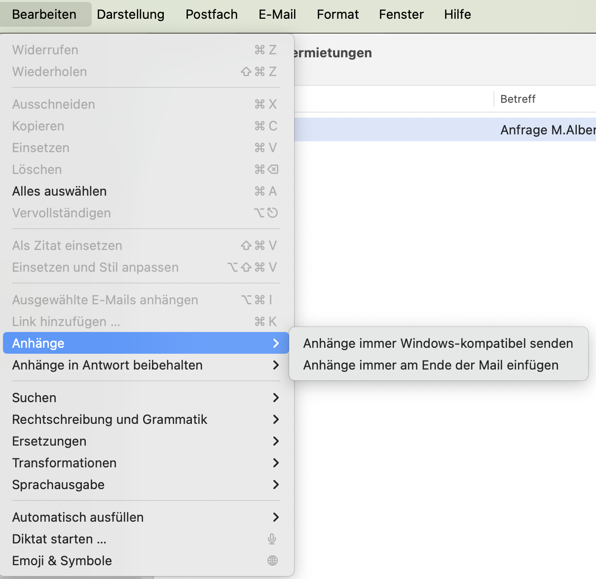 Leider ist es in der Apple Mail-App auf dem Mac nicht möglich, Anhänge direkt an eine bestimmte Stelle im Text einzufügen. Sie werden standardmäßig am Ende der E-Mail eingefügt. Eine einfache Möglichkeit, dieses Problem zu umgehen, ist jedoch, den Anhang manuell an die gewünschte Stelle zu verschieben, nachdem er eingefügt wurde. Ich verstehe, dass dies bei längeren E-Mails etwas mühsam sein kann.