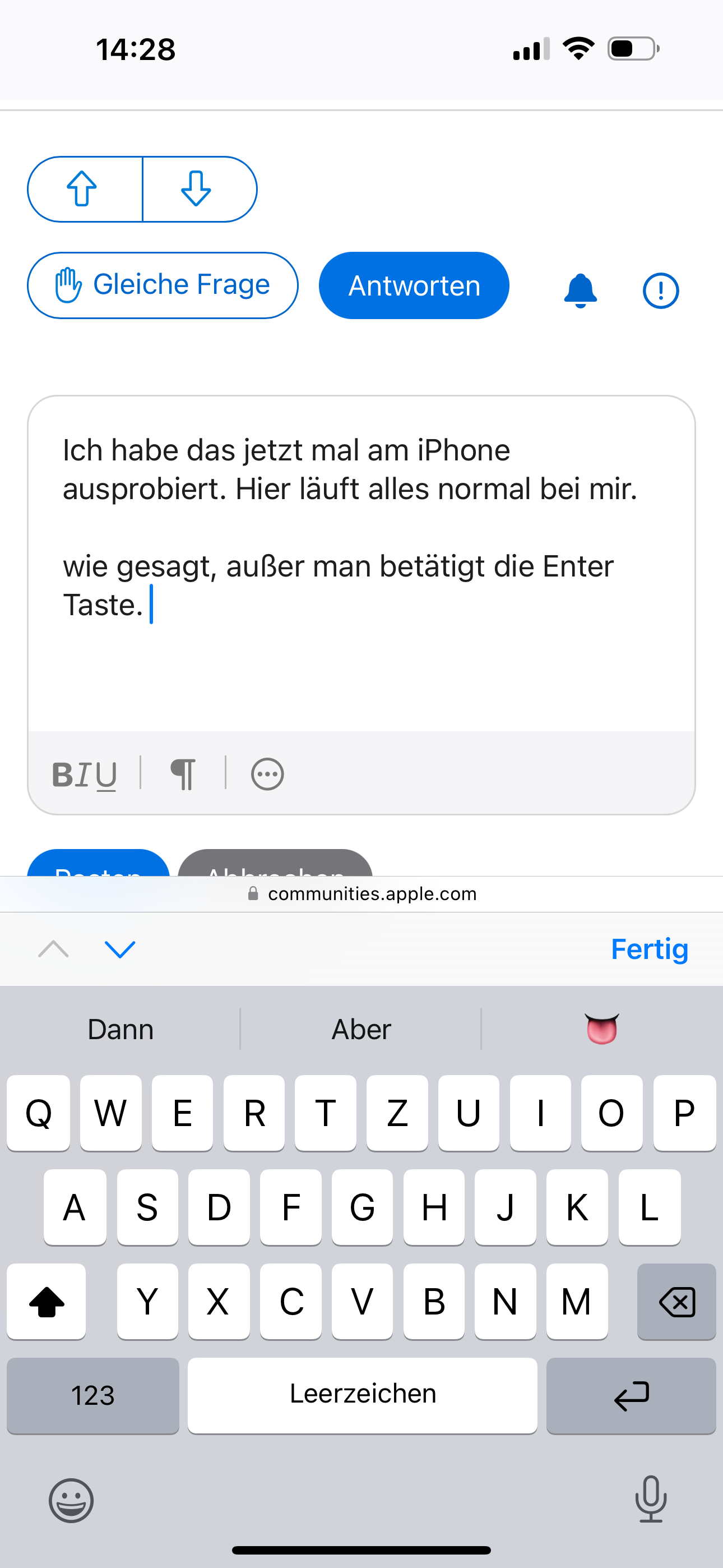 Das ist ja genau das Problem was du beschriebst. Schreibst du auf dem iPhone in der Notizen App etwas und gehst dann über die Enter Taste in die Zeile darunter, dann beginnt der Satzanfang mit einem Großbuchstaben, in der Community tut er das nicht.