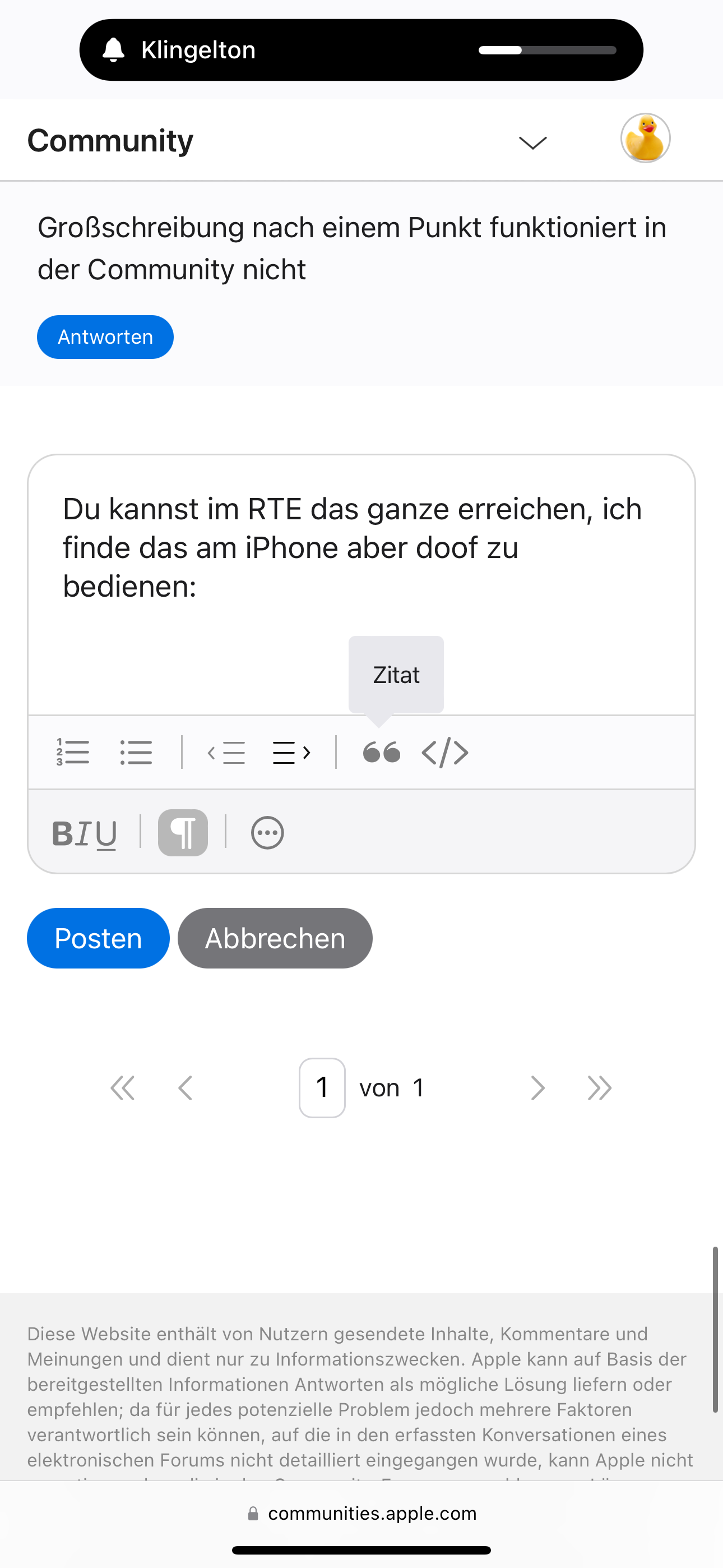 Großschreibung nach einem Punkt funktioniert in der Community nicht