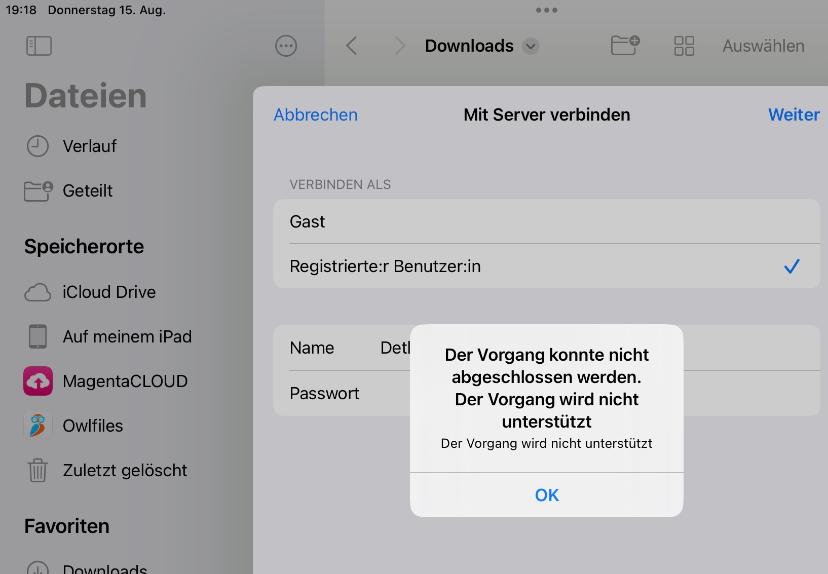 In einem post im Mai wurde dazu empfohlen, über die Datei-App den Kontakt herzustellen. Das ergab bei mir folgenden Hinweis: