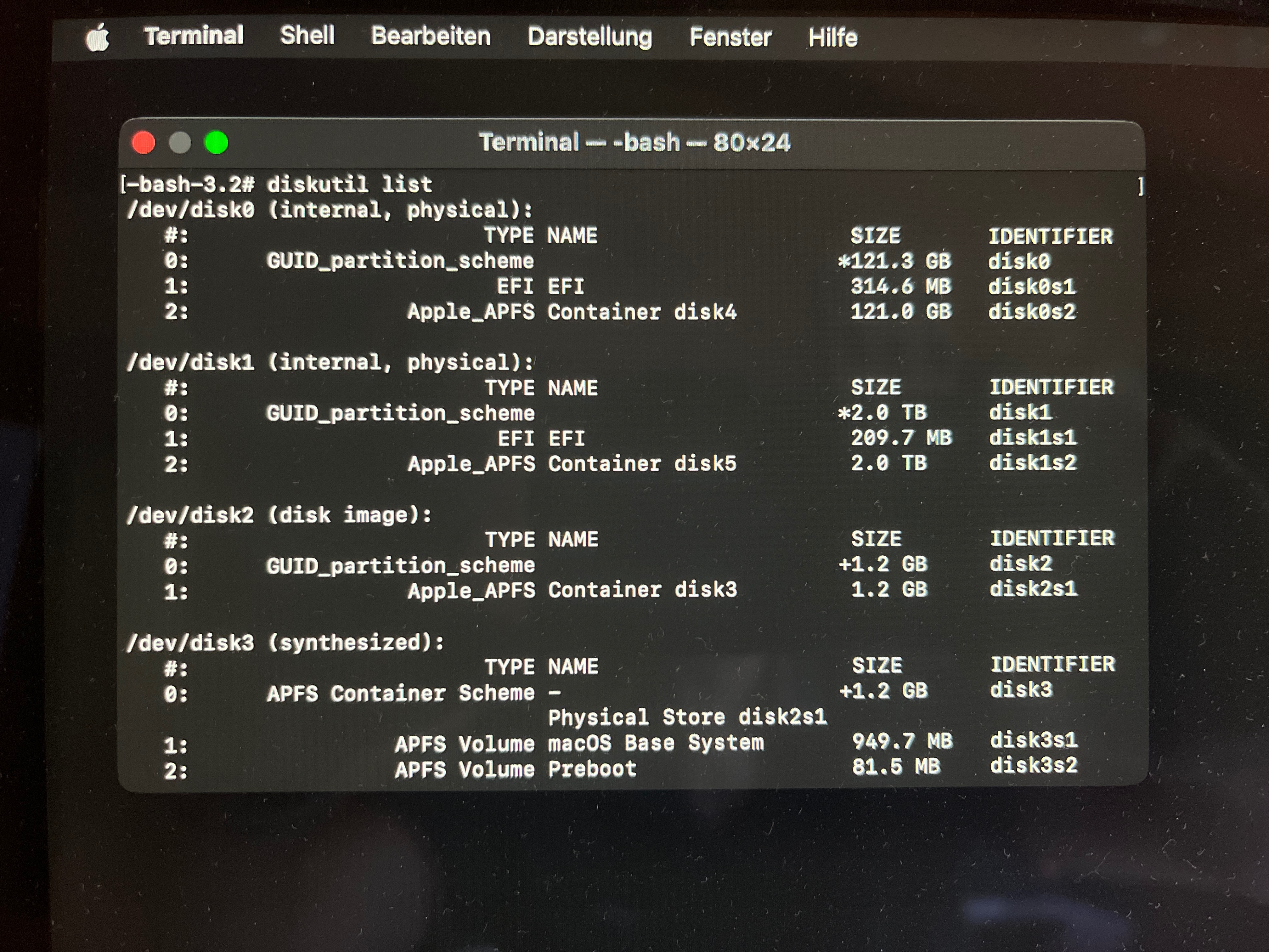 Auf dieser Seite bin ich. Und konnte auch über terminal die Liste der Volumes aufrufen.