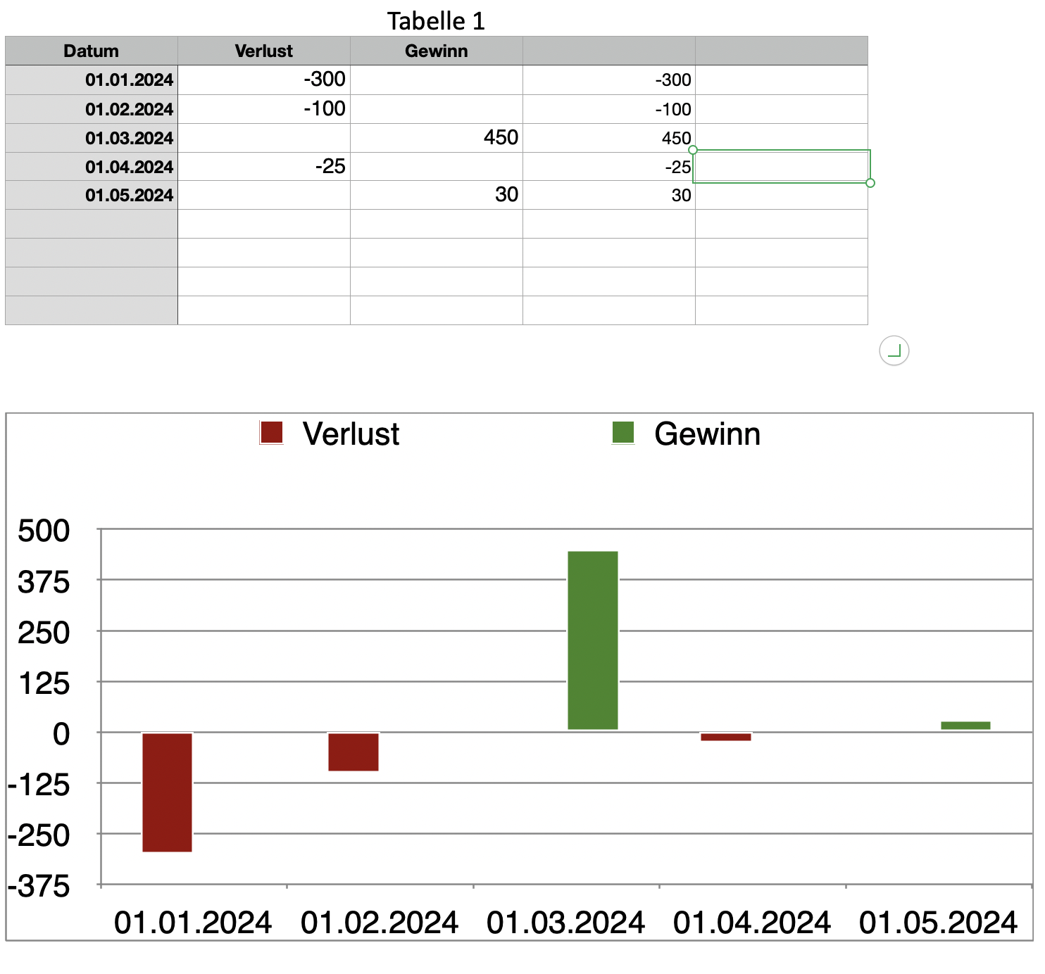 Balkendiagramm in Numbers für Gewinn / Verlust-Darstellung