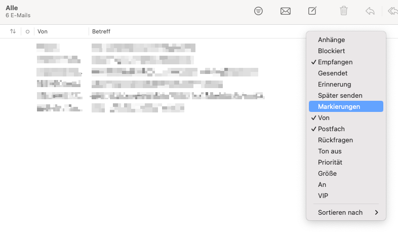 Markierungen in Mail 16.0 nicht sichtbar bei Spaltendarstellung