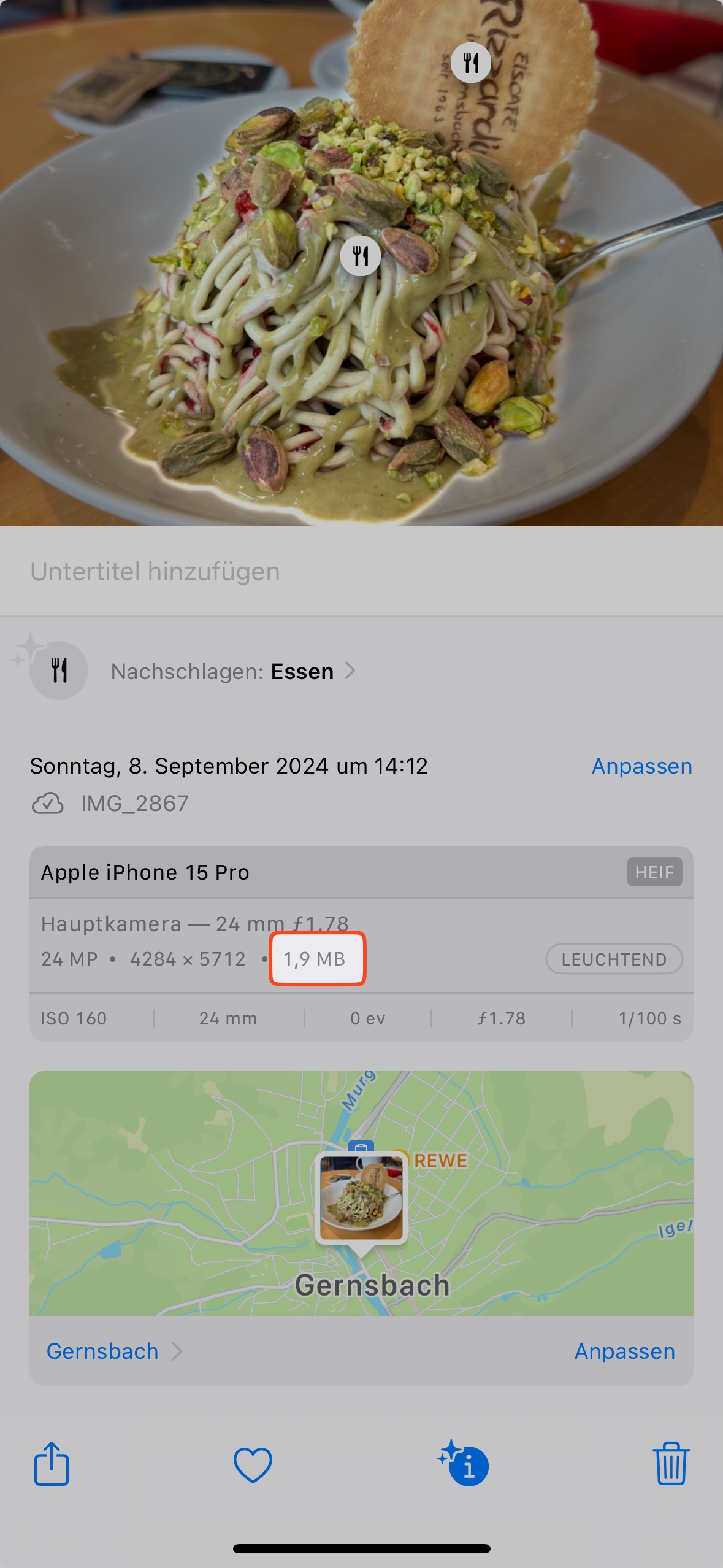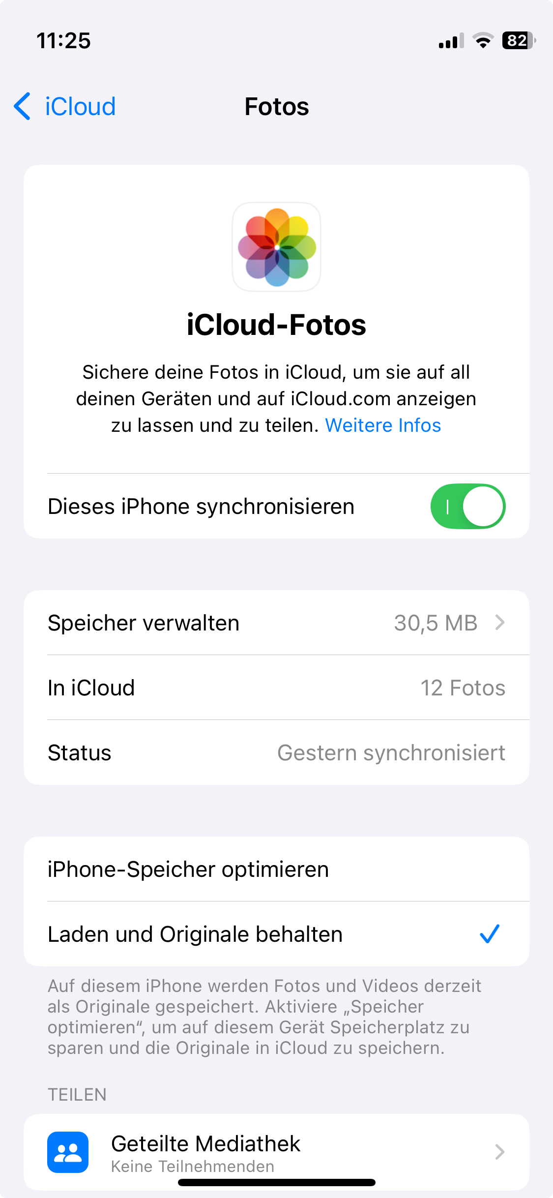 Wenn ich nun die Funktion IPhone Speicher optimieren wähle werden Fotos am Handy in komprimierter Form und in der Cloud als Original gespeichert..