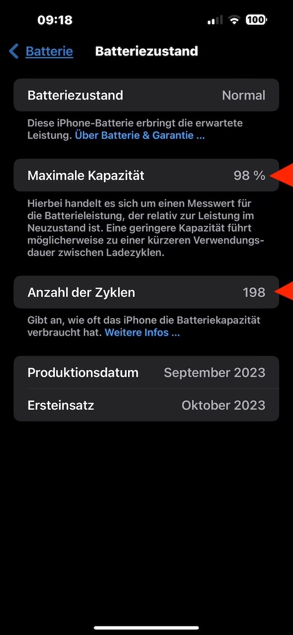 Es wären schon weit mehr volle Ladezyklen, wenn das iPhone nicht so oft die Aufforderung auf 100% zu laden verweigert hätte und den Ladevorgang wegen Überhitzung spätestens bei ca. 94% abgebrochen hätte, meistens schon früher. Dann bleibt mir nichts anderes als gleich beim Aufbruch den Stromsparmodus zu aktivieren, um den Stromverbrauch durch die Hintergrundprozesse zu verhindern, bis ich wieder eine Gelegenheit habe, das iPhone zu laden.
