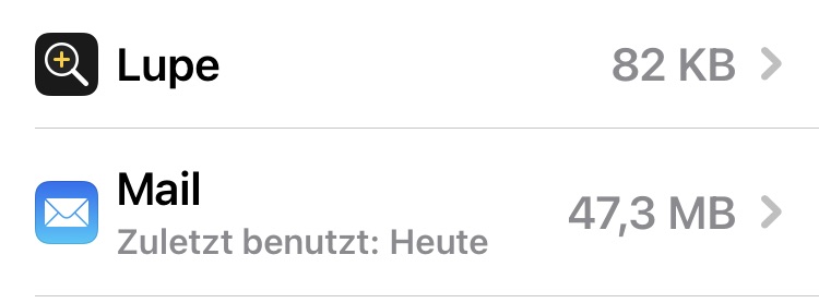 Es ist normal, dass der Speicherplatz, den die Mail-App auf deinem iPhone belegt, größer sein kann als der, der in iCloud für deine E-Mails angezeigt wird.