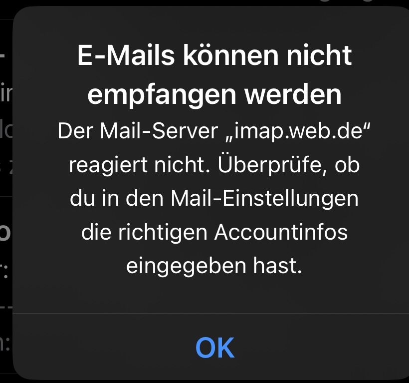 Probleme beim einrichten der Mail App unter Verwendung des Web.de Account