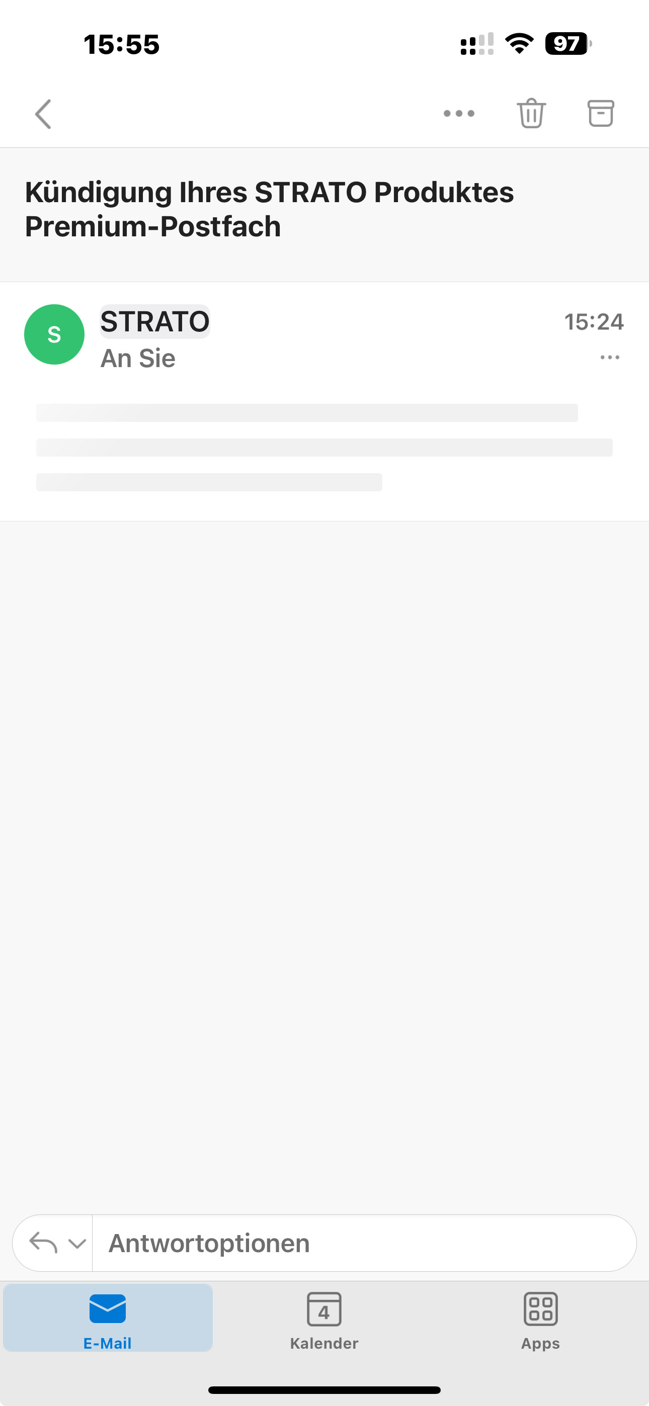 Ich bekomme zwar die Meldung, dass ich eine neue Email erhalten habe, kann jedoch lediglich den Anhang und Absender erkennen... Der Inhalt der Email ist nicht zu lesen (siehe Anhang).