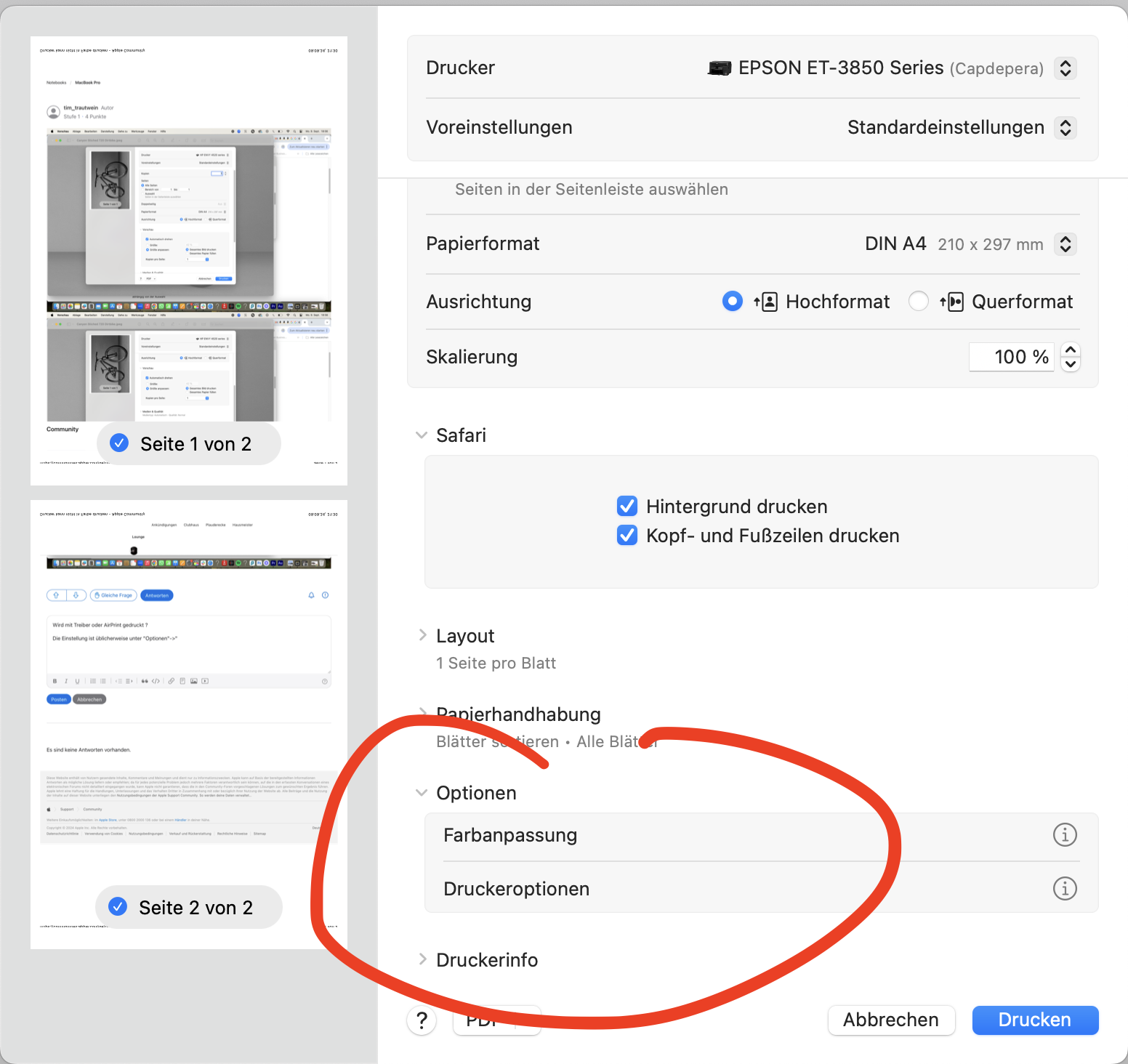 Hey, ich kann bei meinem Drucker nicht auswählen, dass er in Farbe drucken soll. Habe auch nicht gefunden, wie ich eine andere Voreinstellung in den Systemeinstellungen hinzufügen kann. Wäre super, wenn mir jemand helfen kann. Ist ein MacBook Pro M1 Max. (Sonoma 14.5)