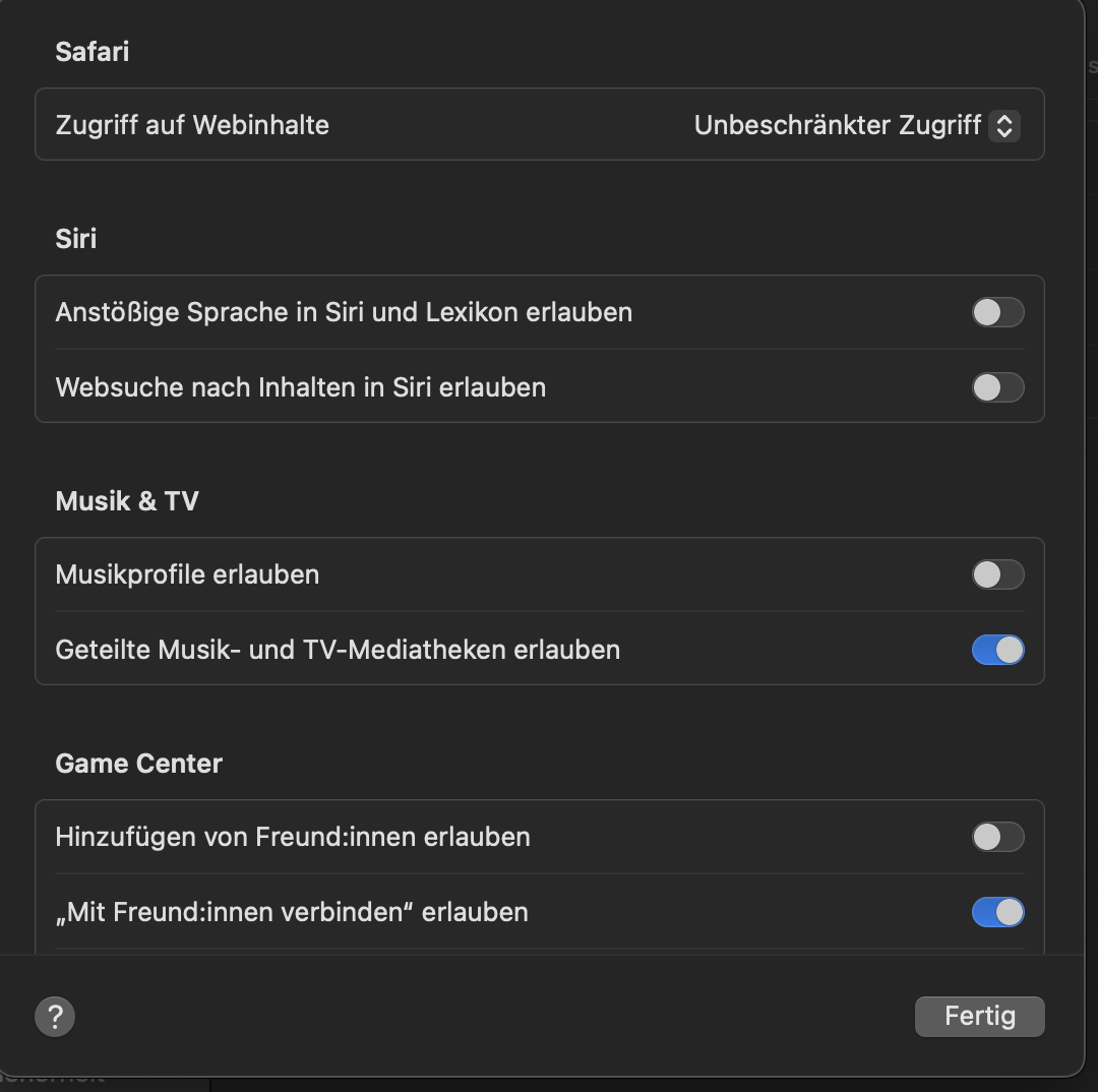 Bildschirmzeit Probleme mit nicht veränderbaren Optionen