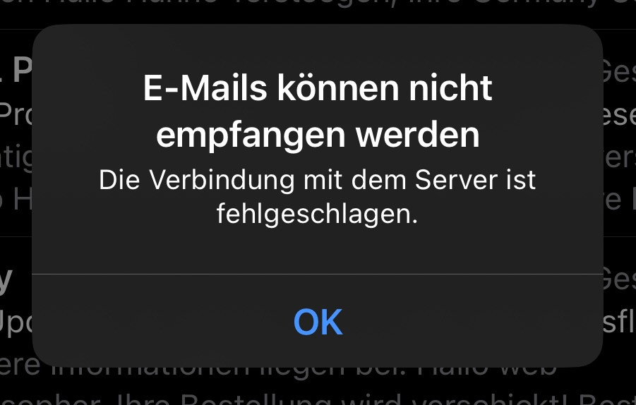 Seit merinem gestrigen Update meldet mir die Mail-App, das "keine Verbiondung mit den Server" hergestellt werden kann. (siehe Bilder)