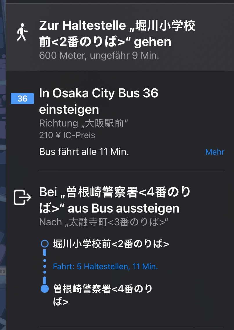 wenn ich mit meinem deutschen iPhone in Tokio oder anderen japanischen Städten eine Bus-Route suche, werden die Stationsnamen in „Pseudojapanisch“ dargestellt, obwohl selbst im Bus die Stationsnamen auch in lateinischen Buchstaben angezeigt werden. Wie lässt sich das ändern? Ich habe nichts gefunden.