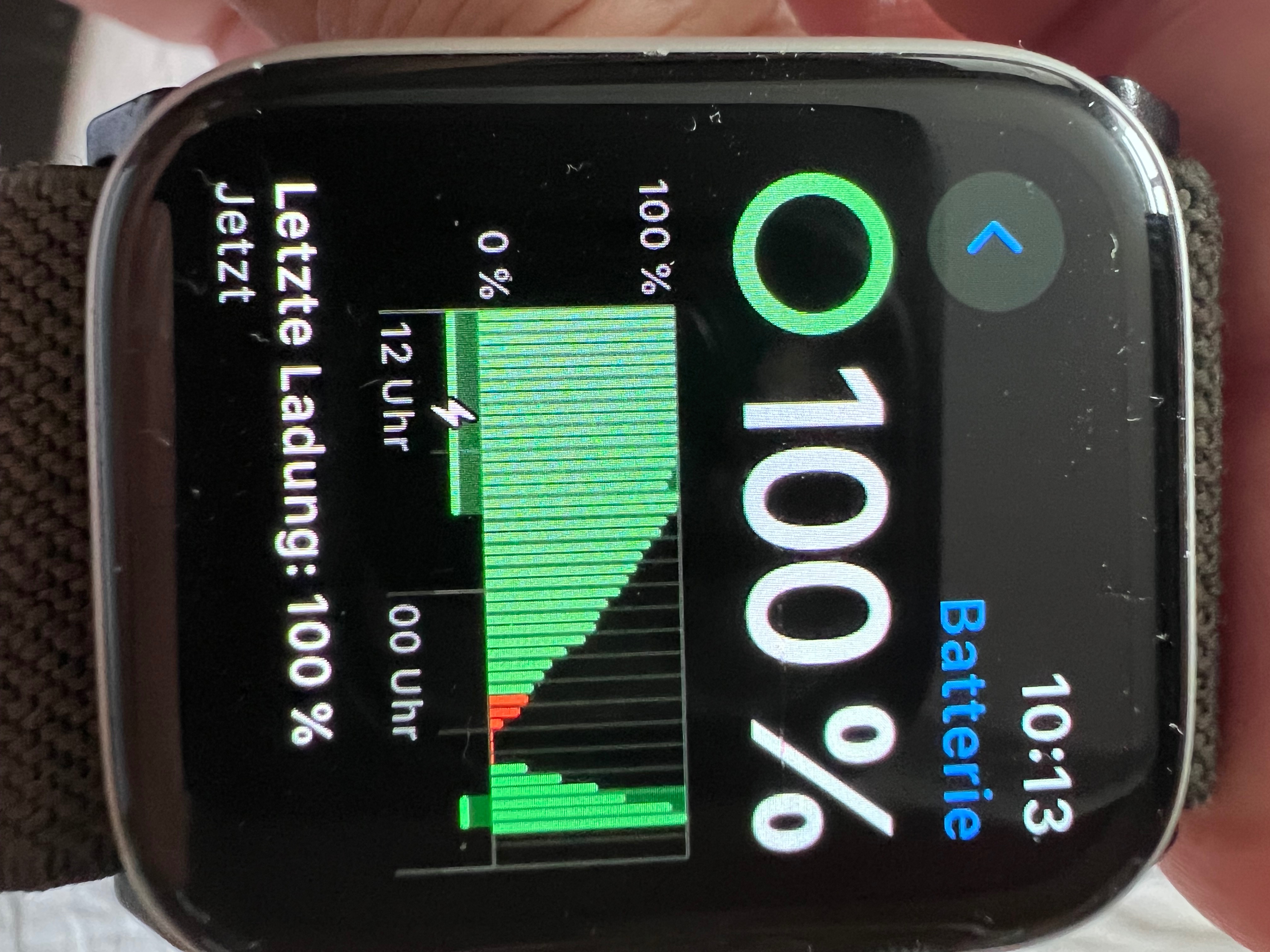 Stand jetzt, habe ich 33% und heute Morgen mit 100% vom Ladegerät genommen. Dazu sagt die Uhr dass die letzte 100% Ladung am 10.09.24 gewesen sein soll.