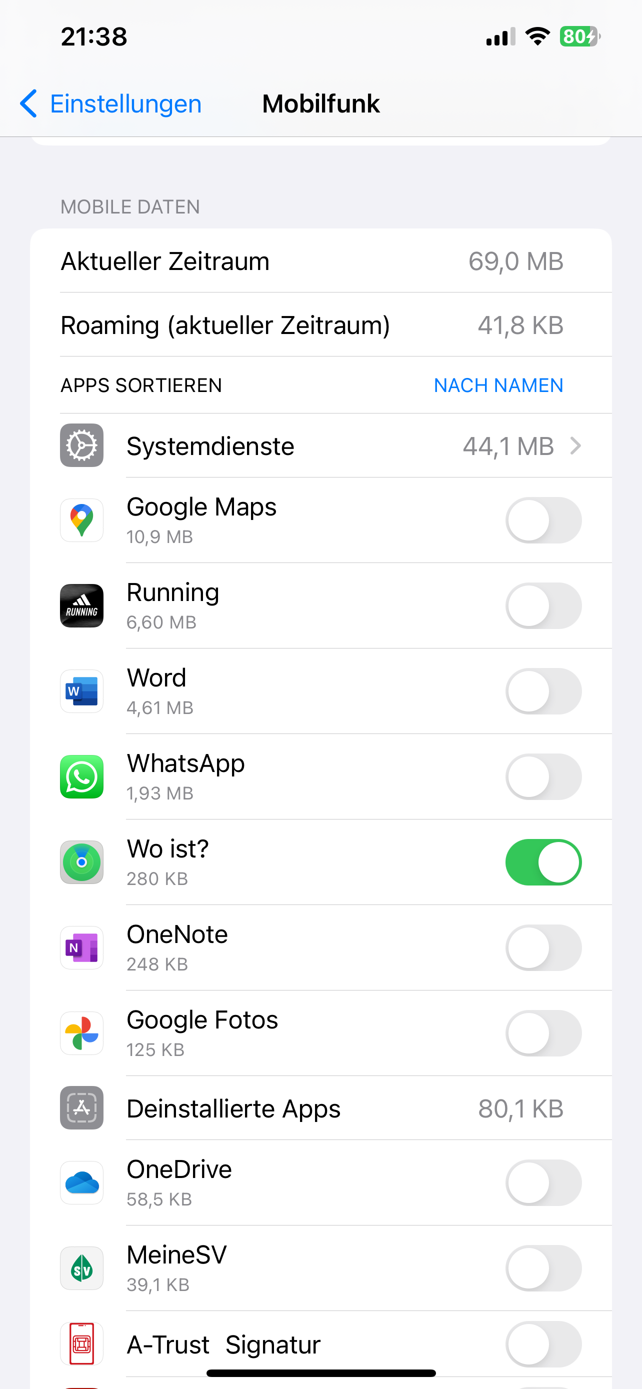 Mobile Daten für Apps deaktiviert - trotzdem Datenverbrauch