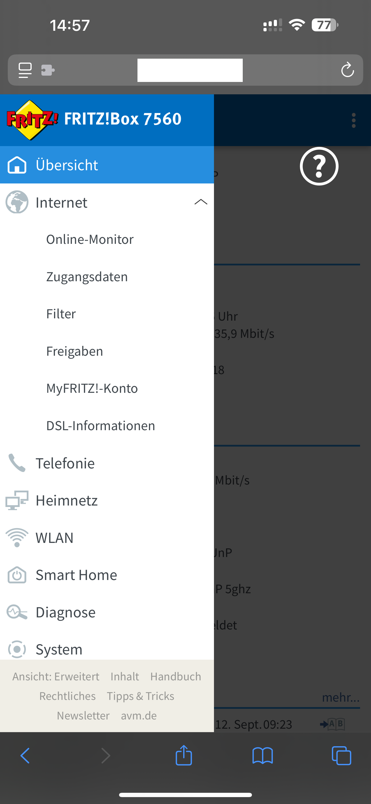 Seit dem Update auf iOS 18 habe ich nur noch teilweise Zugriff auf das UI meiner Fritzbox 7560.