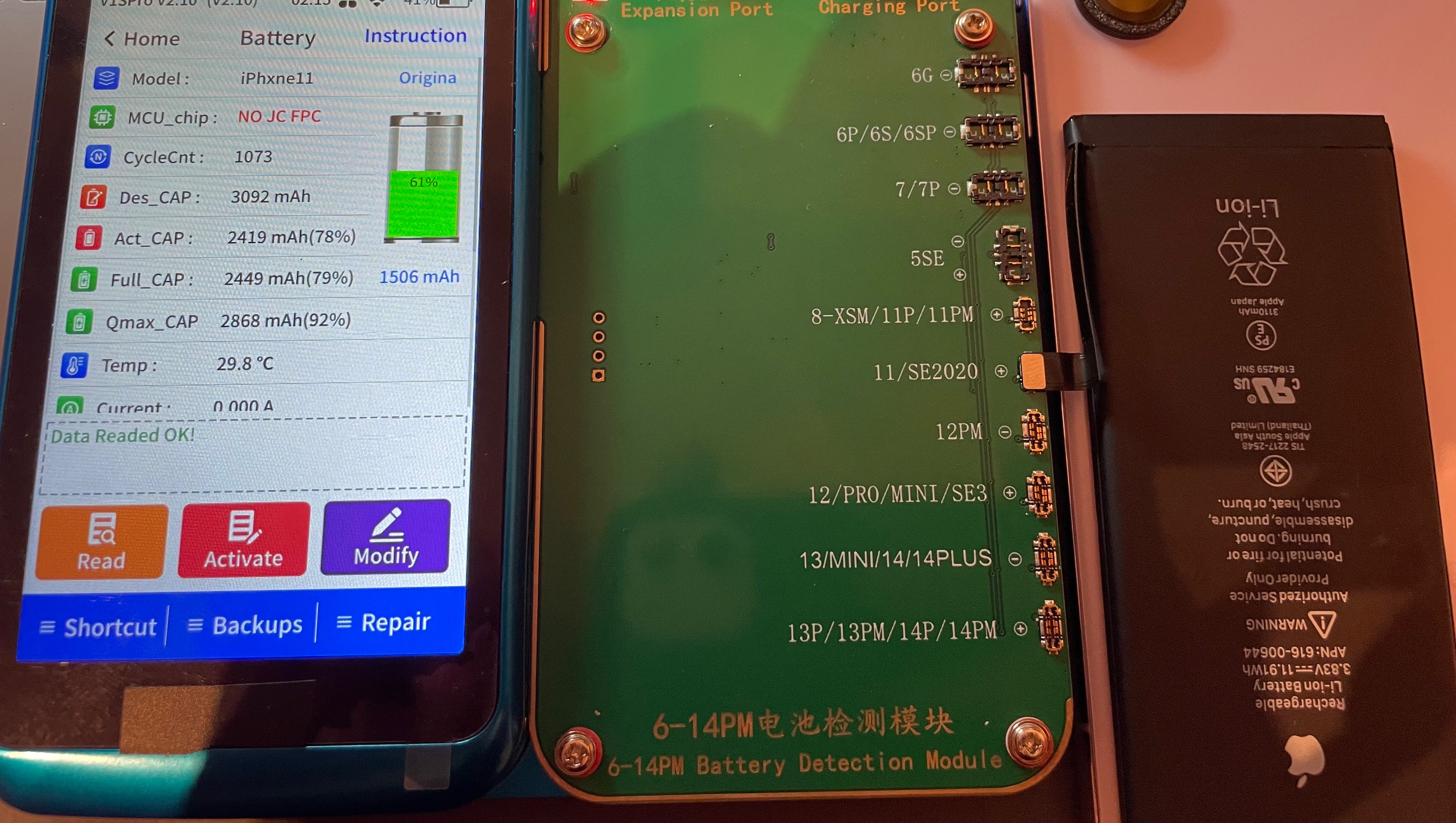Nach übertragen der BMS des ursprünglichen Akkus , muß ich ,sowohl beim neuen orginal Apple ,wie auch Drittanbieter Akku , diesen auslesen und die Ladezyklen auf Null setzen um eine 100%tige Ladekapazität zu erreichen.