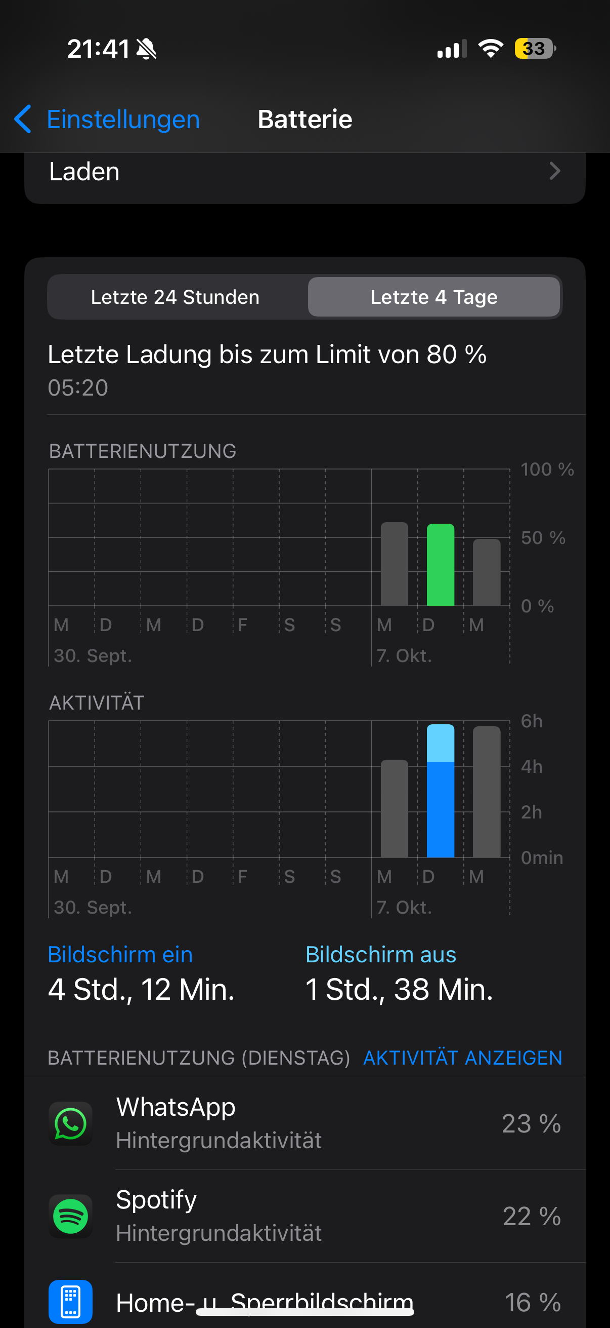 Zudem habe ich festgestellt, dass meine Bildschirmzeit morgens um 7 Uhr schon bei 7 Stunden liegt und das obwohl ich alle Apps schließe und das Telefon über Nacht sogar herunterfahre.