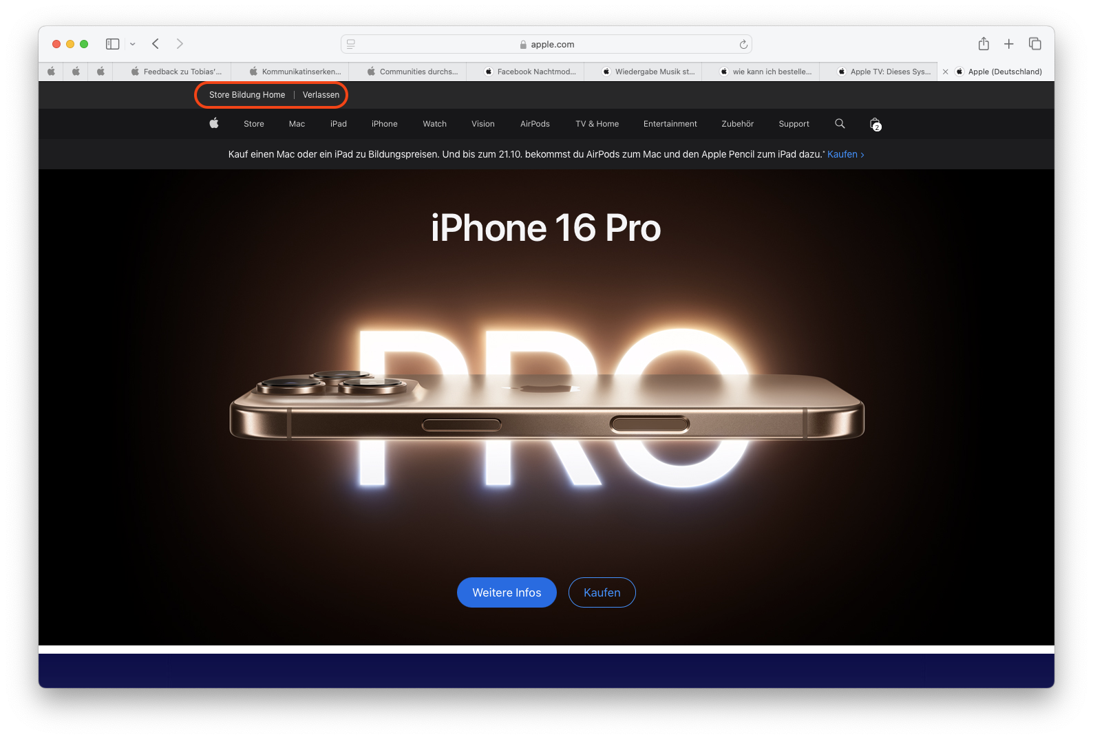 Ohne den Bildungsrabatt iPad bestellen