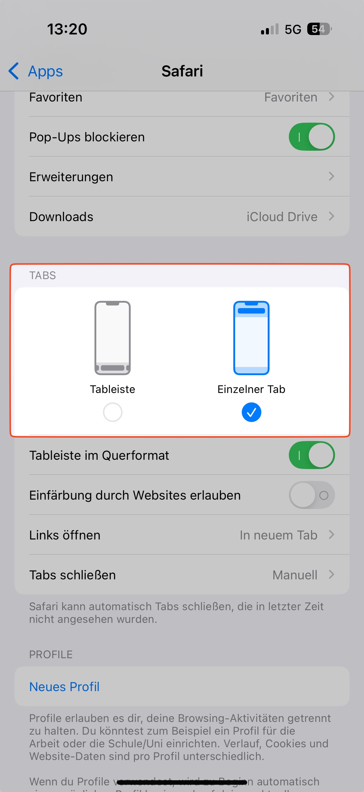 Beim iPhone 15pro/iOs 18 lässt sich weder in Safari noch in Safari die Leiste nach oben verschieben/verändern, obwohl bei beiden Browsern so eingestellt.
